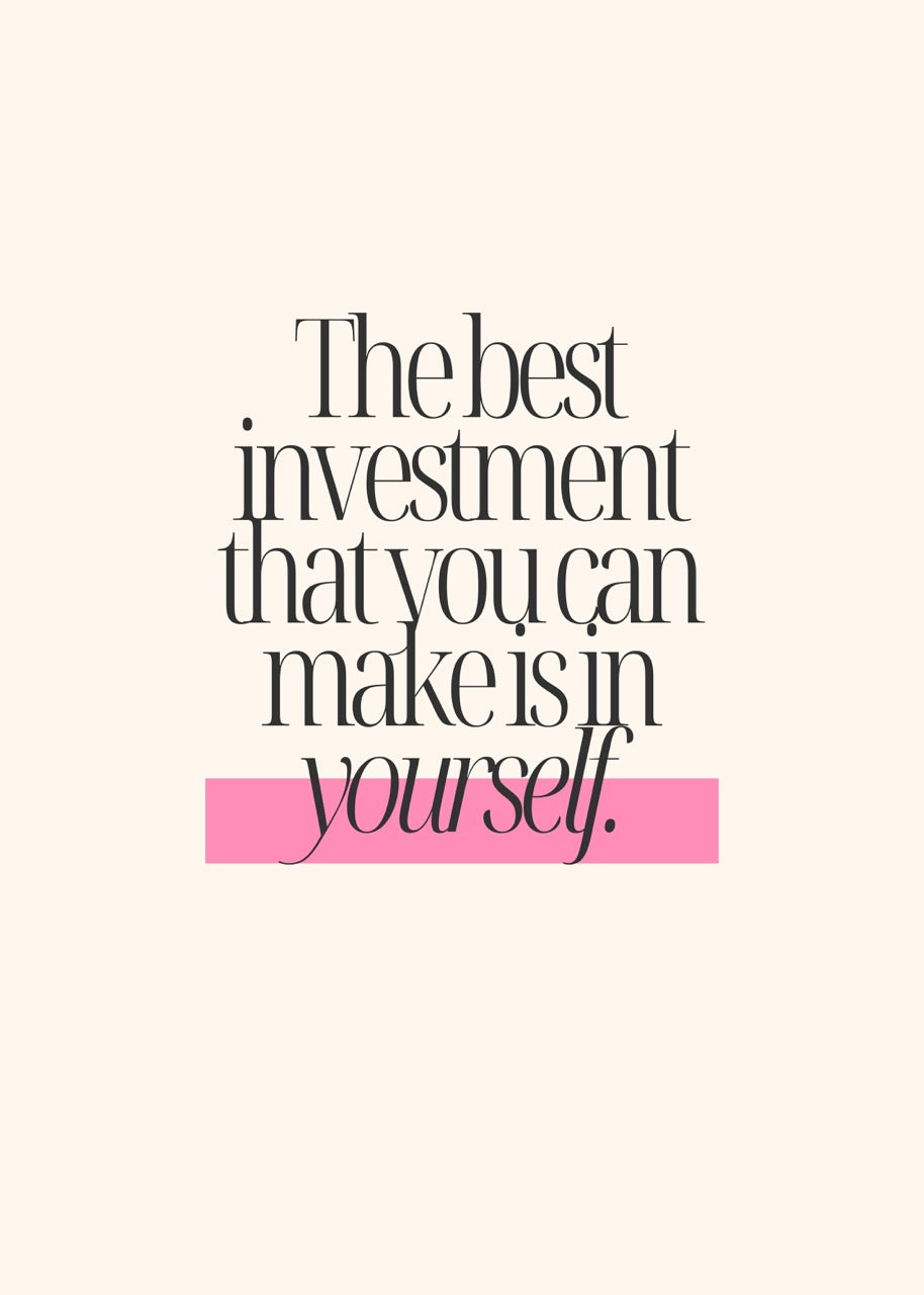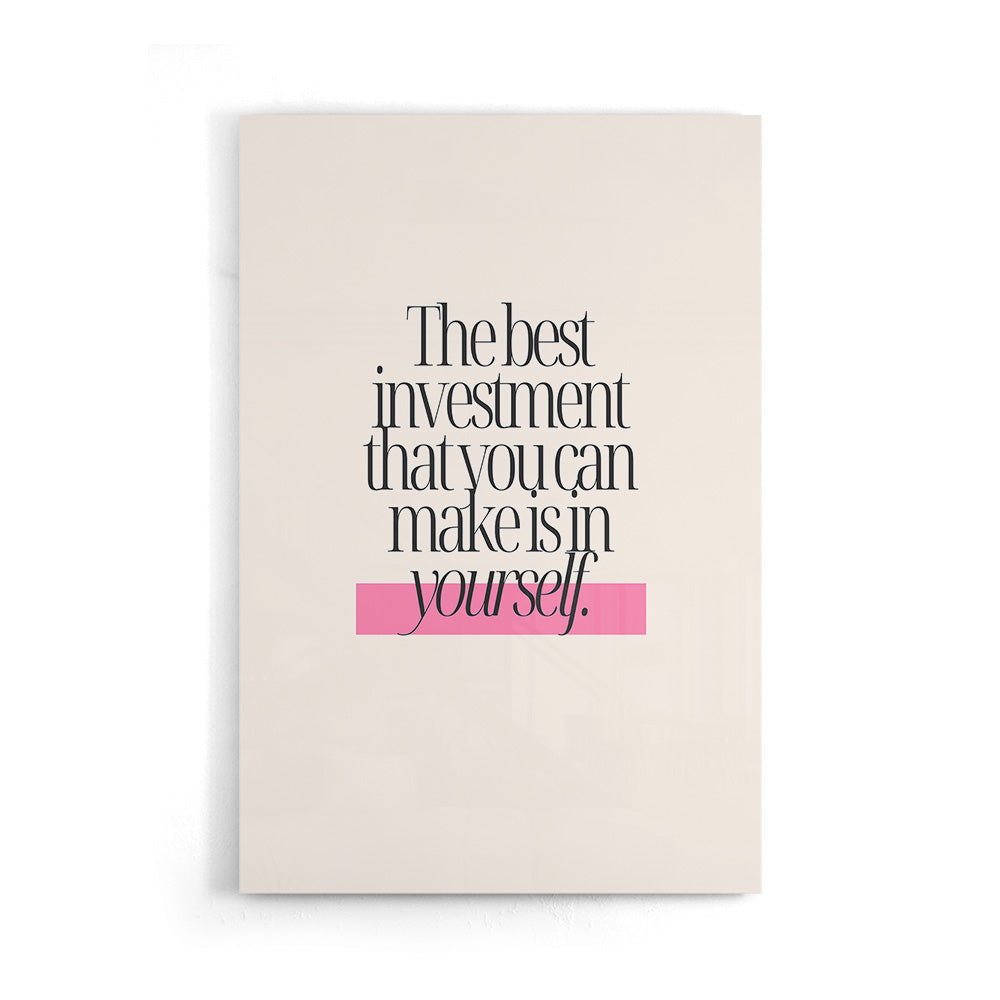 Een stijlvolle en inspirerende quote-poster die je dagelijks herinnert aan het belang van zelfontwikkeling. Het elegante lettertype en de zachte kleurcombinatie van crème en roze maken deze print perfect voor een home office, studieruimte of moderne woonomgeving. Een motiverende toevoeging aan elk interieur.