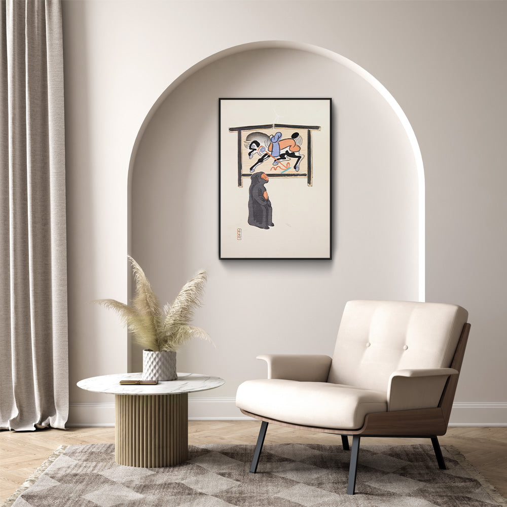 Kawasaki Kyōsen stond bekend om zijn unieke manier van het vastleggen van alledaagse Japanse objecten en speelgoed. Met minimale lijnen en zachte kleuren weet hij een scène neer te zetten die zowel speels als contemplatief aanvoelt. Deze poster past perfect binnen een Japandi, zen of minimalistisch interieur en is ideaal voor wie houdt van kunst met een subtiele knipoog.