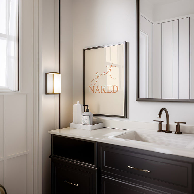 Geef je badkamer, douche of toilet een speelse touch met deze stijlvolle print! De minimalistische tekst en warme tinten passen perfect in elke ruimte. Perfect als grappige badkamer decoratie of cadeau. Bestel nu en maak je wc of badkamer extra uitnodigend!