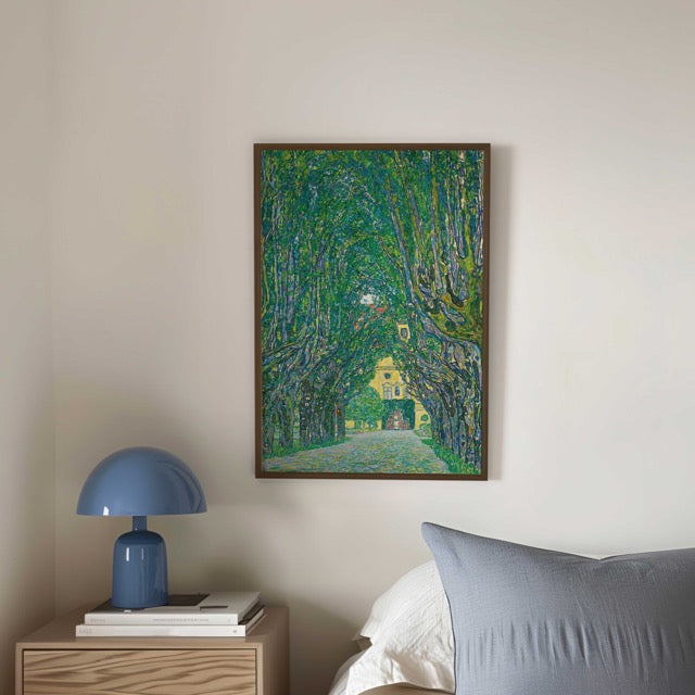 Breng de betoverende sfeer van Schloss Kammer Park in huis met onze poster van Avenue of Schloss Kammer Park door Gustav Klimt. Dit prachtige kunstwerk toont een idyllische laan omgeven door weelderige bomen, weergegeven in Klimt's kenmerkende stijl. De levendige kleuren en gedetailleerde texturen creëren een gevoel van rust en sereniteit, perfect om een kalmerende ambiance in elke ruimte te brengen. Ideaal voor liefhebbers van landschapskunst of als elegante toevoeging aan je interieur. Bestel nu en verrijk je huis met een stukje tijdloze schoonheid!