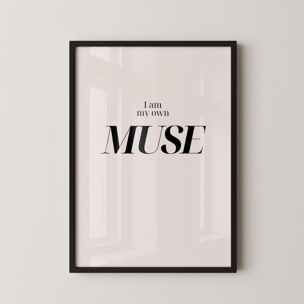 Laat je inspireren door de kracht van zelfvertrouwen met de "I Am My Own Muse" poster. Dit minimalistische en stijlvolle ontwerp is perfect voor iedereen die gelooft in zelfliefde, onafhankelijkheid en eigen creativiteit. De krachtige boodschap, gedrukt in een elegante zwart-witte typografie op een lichte achtergrond, straalt klasse en eenvoud uit.
