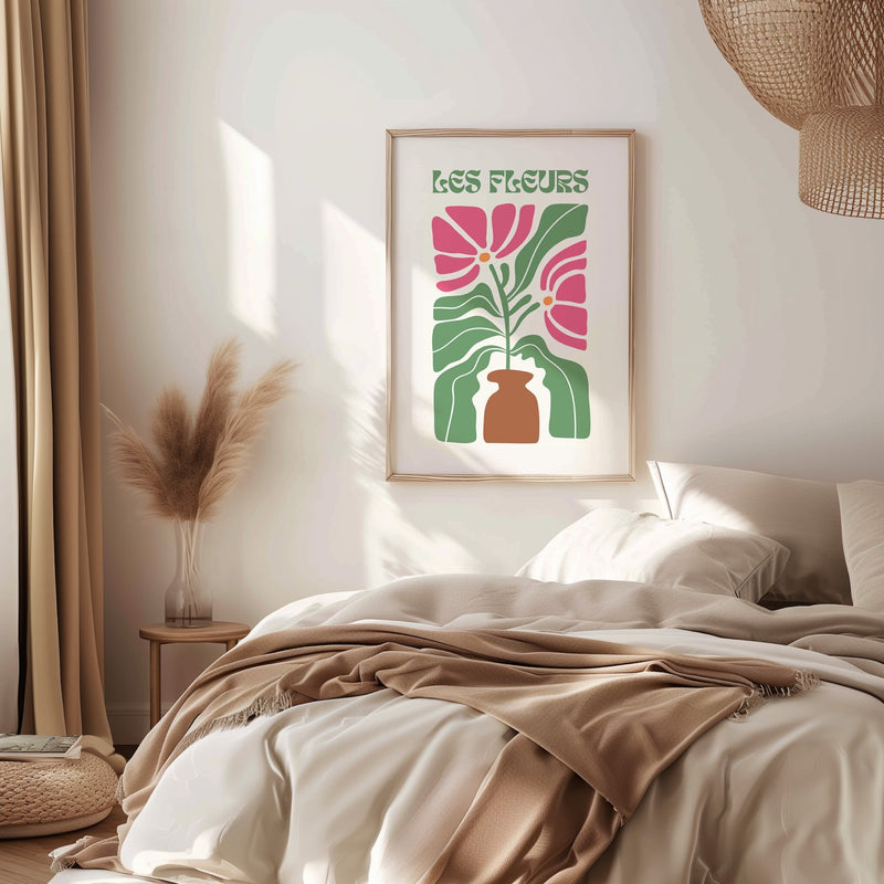 De Les Fleurs poster past perfect in diverse interieurstijlen. Of je nu een bohemian, Scandinavische of modern-eclectische look nastreeft, deze poster voegt een speels en toch elegant element toe aan je ruimte. Hang hem op als een los statement-stuk of combineer hem met andere botanische en abstracte prints voor een harmonieuze gallery wall.