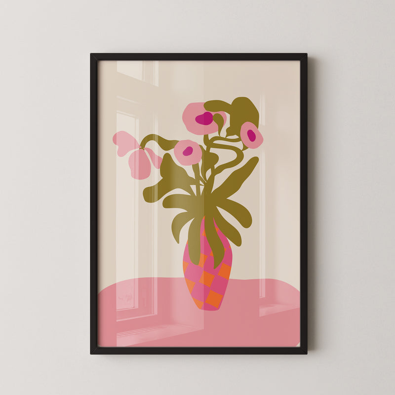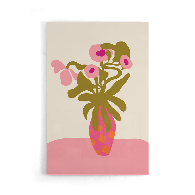 Breng kleur en energie in je interieur met deze prachtige Roze Bloemen in Vaas poster. Het speelse design combineert zachte, warme tinten met een moderne, minimalistische stijl. De organische vormen en subtiele details geven een eigentijdse twist aan klassieke bloemmotieven.