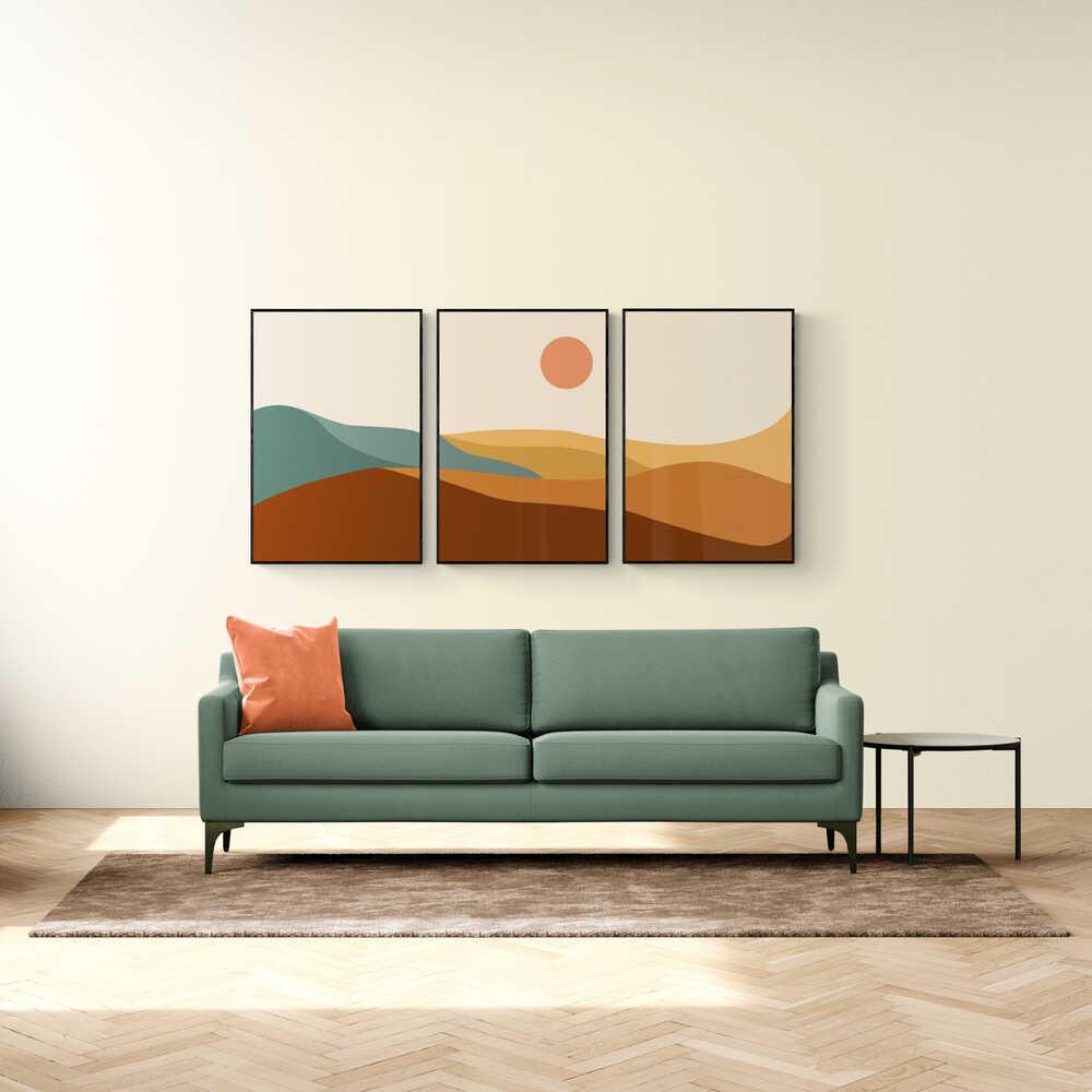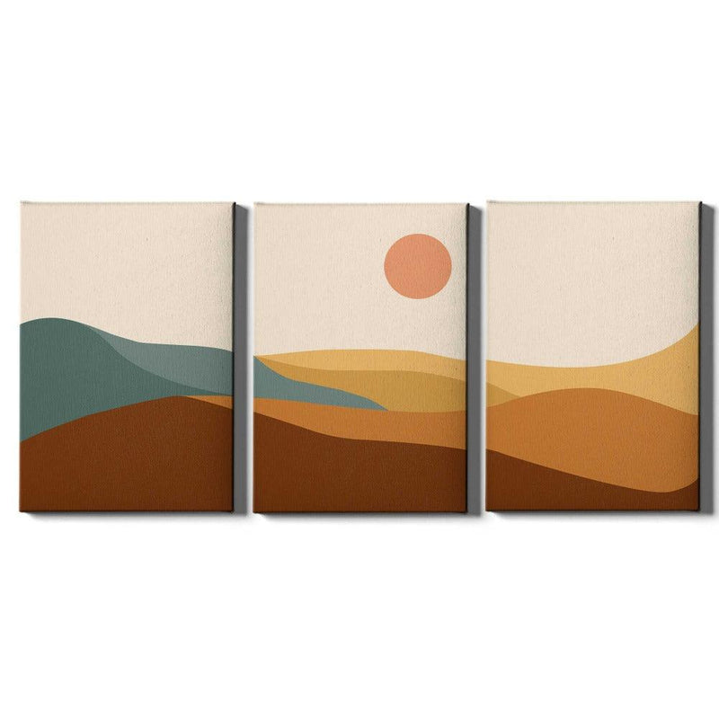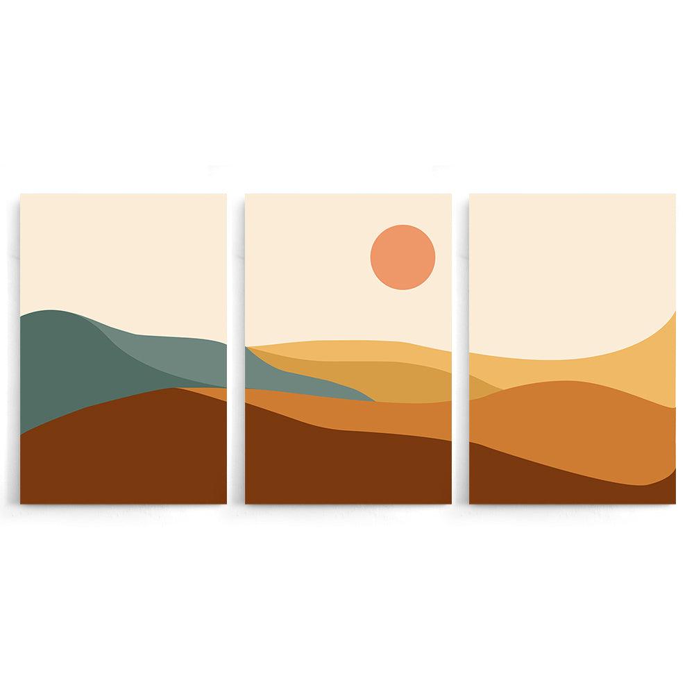 Dompel jezelf onder in de betoverende schoonheid van de woestijn met het "Desert Hills", een verbluffende collectie kunstwerken verkrijgbaar als drieluik op poster, canvas of acrylglas. Dit fascinerende werk vangt de essentie van kleurrijke landschappen en neemt je mee op een visuele reis door de serene en ontzagwekkende charme van woestijnheuvels.