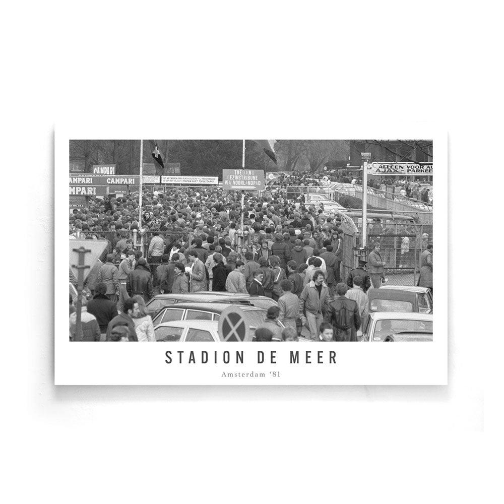 Op deze print zie je de wedstrijd van AFC Ajax tegen Haarlem 4-1 in Stadion De Meer. In deze wedstrijd speelde Johan Cruyff. Je ziet de drukte bij de loketten van het Ajax stadion. Sportprints kunnen een motivatie zijn om net zoals deze geweldige mensen zoals Johan Cruijff keihard te werken.