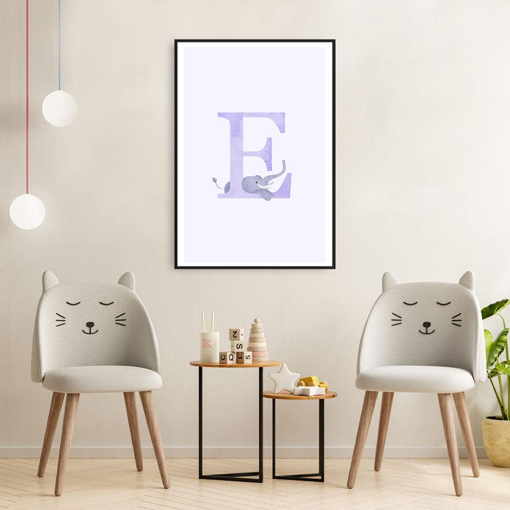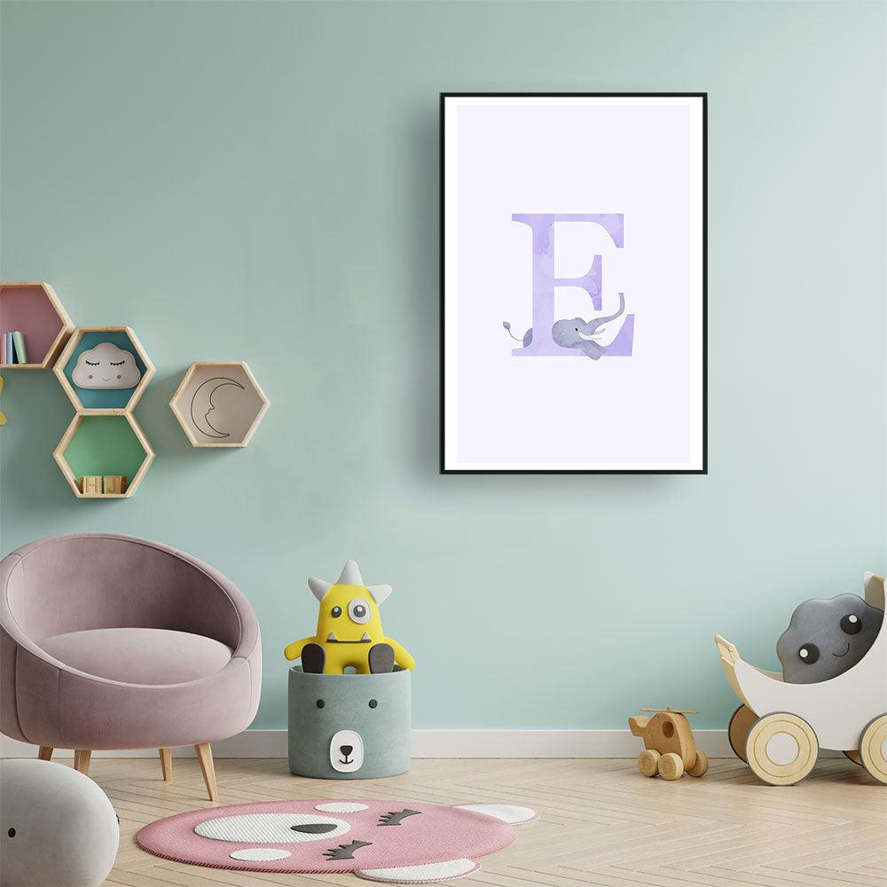 Alfabet E Deze kinderposter zal de kamer van jouw kindje opfleuren en een schattige look geven. Geef een unieke look aan de kamer van jouw kindje en bestel deze leuke wanddecoratie!