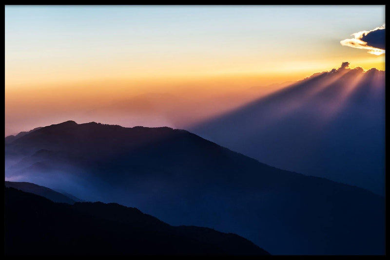 Met deze zonsopkomst en zonsondergang poster kun jij genieten van de mooiste luchten. Met deze wanddecoratie geef jij jouw huis meteen een gezellige look.