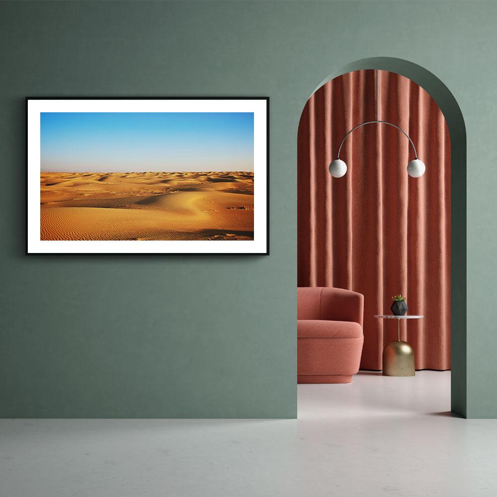 Ontdek de betoverende schoonheid van de Blue Desert met deze adembenemende afbeelding, beschikbaar als poster, canvas of acrylglas print. Laat je meevoeren naar een wereld van serene rust, ongerepte horizonnen en een overvloed aan blauwtinten.