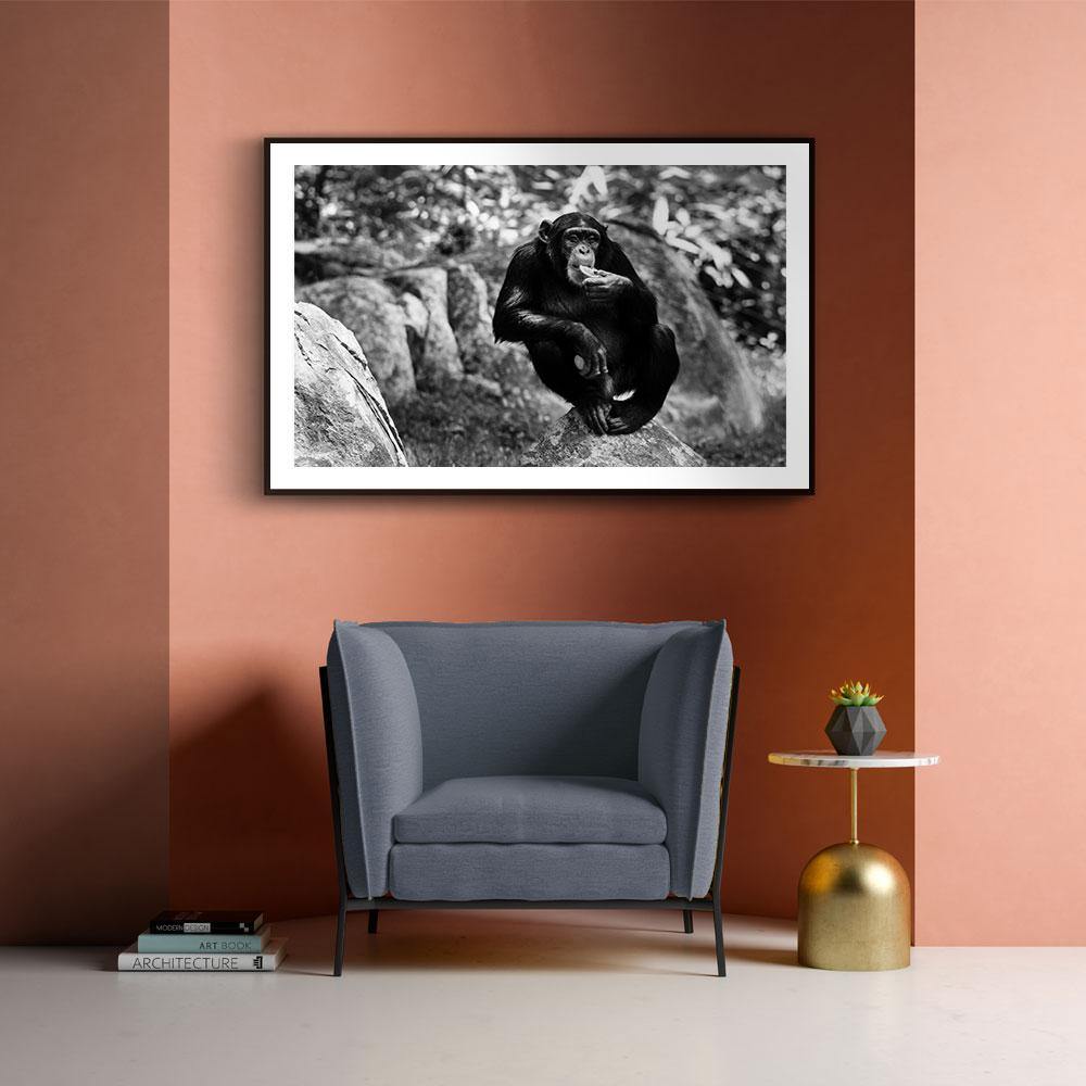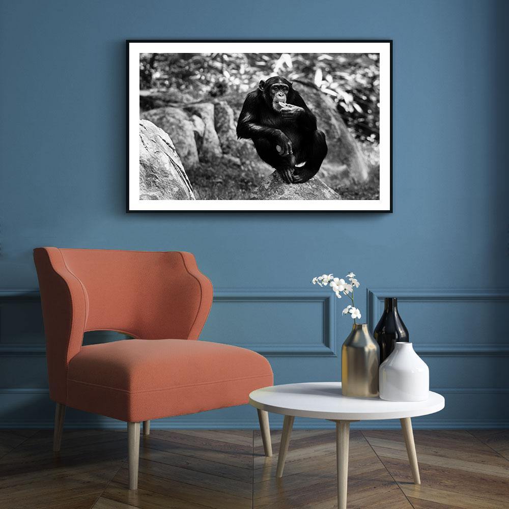 Verkrijgbaar als poster, canvas of acrylglas, past deze chimpanzee print moeiteloos in diverse interieurstijlen. Of je het nu in de woonkamer, studeerkamer of zelfs een kantoorruimte plaatst, het kunstwerk zal ongetwijfeld een gespreksonderwerp worden en een bron van dagelijkse inspiratie.