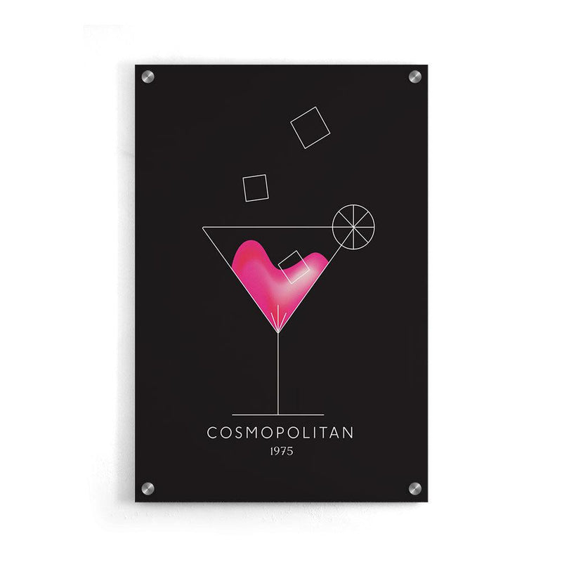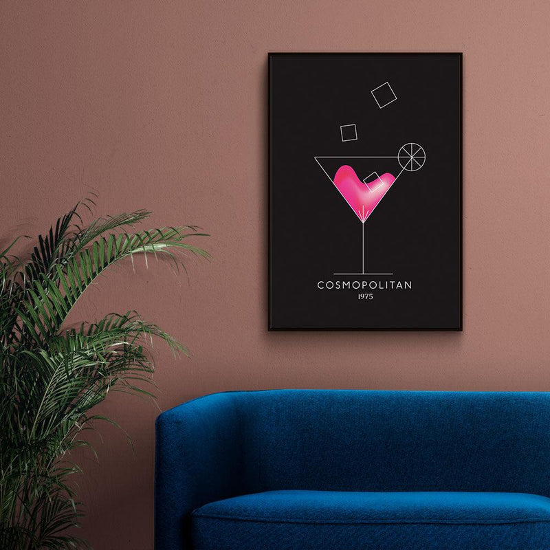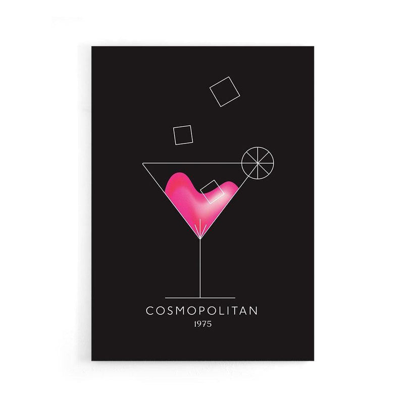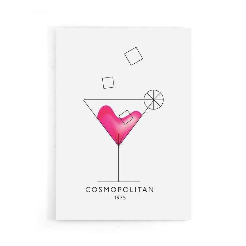 Op deze heerlijke roze cocktail poster zie je de Cosmopolitan cocktail! De populaire cocktail is geliefd in zowel kleur als smaak en wordt gemaakt met wodka, cranberrysap, limoensap en sinaasappel likeur. Over de geschiedenis van het drankje valt te twisten: het drankje werd mogelijk al in de jaren dertig geschonken, maar werd pas in de jaren zeventig herontdekt. Bestel de roze cocktail op poster, canvas of plexiglas!