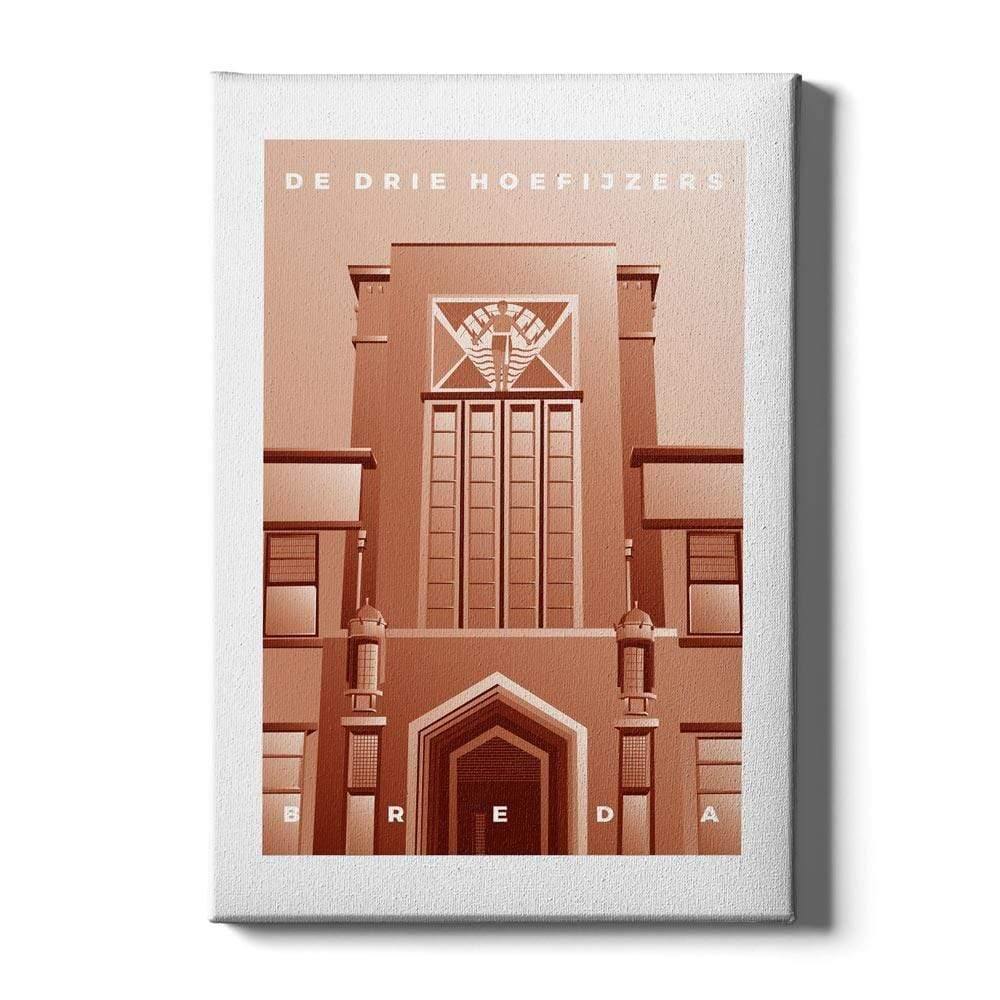 De Drie Hoefijzers is een voormalige bierbrouwerij in Breda. De bierbrouwerij werd opgericht in 1538 door Hendric van den Corput. Tegenwoordig wordt het gebied gebruikt voor woon-, werk- en recreatieve functies eveneens onder de naam Drie Hoefijzers. Met het schilderij van de Drie Hoefijzers aan de muur kun je genieten van één van de rijksmonumenten van Breda. Laat zien dat jij Breda waardeert met een prachtige foto van de Drie Hoefijzers aan de muur.