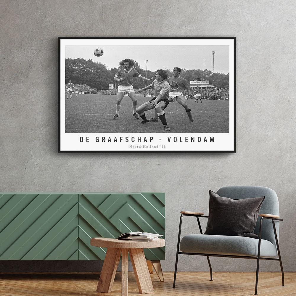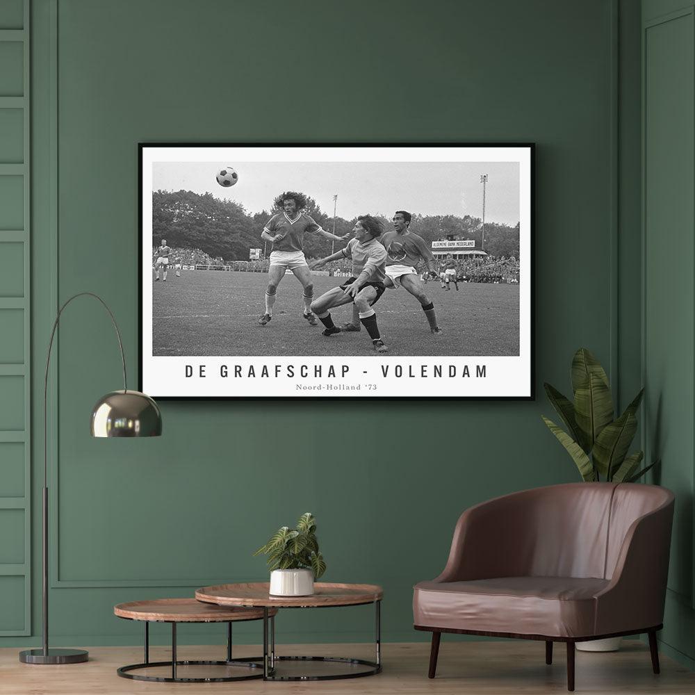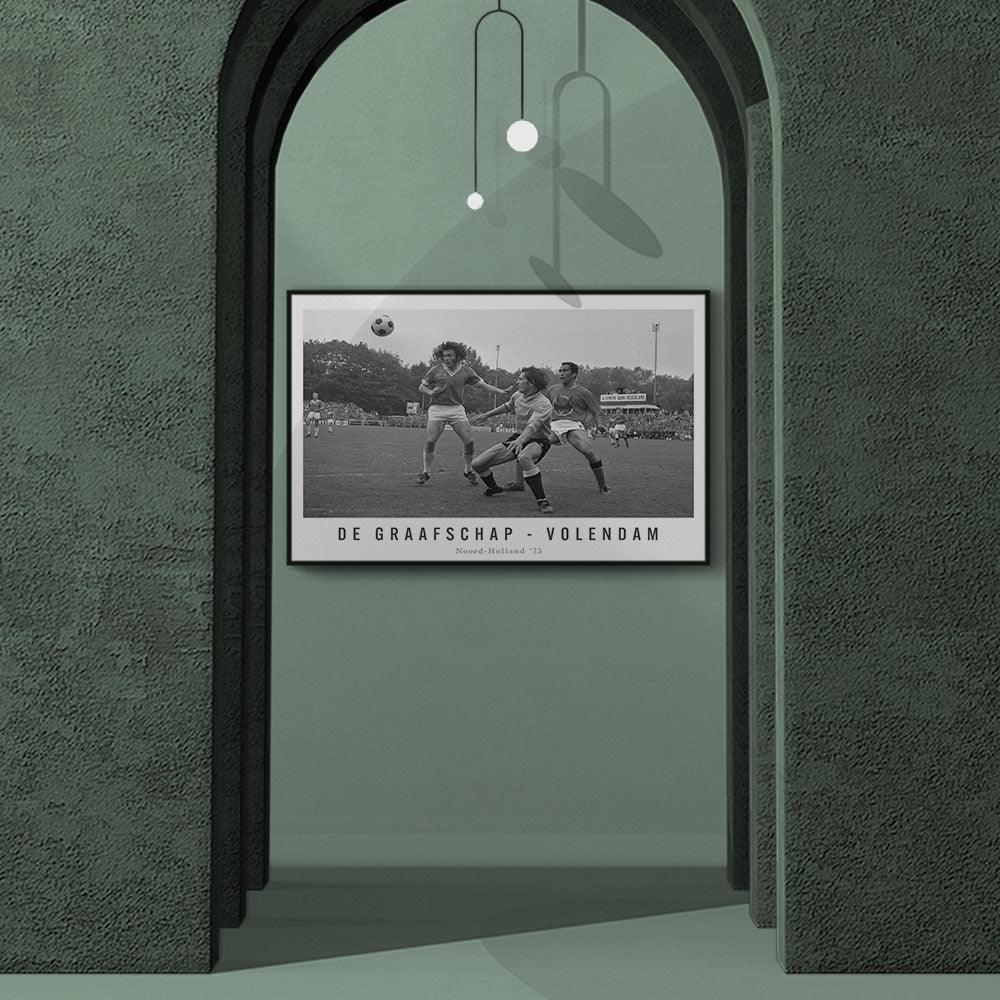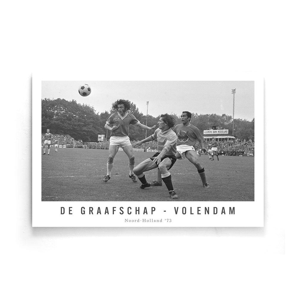 De Graafschap tegen Volendam 1-0. Midden keeper Oosterhout ( De Graafschap ), rechts Ferreira. Deze prachtige print geeft sfeer in jouw omgeving! De print is gedrukt met een witte rand die het ontwerp mooi inkadert. Het ontwerp is te verkrijgen op poster, canvas en plexiglas.