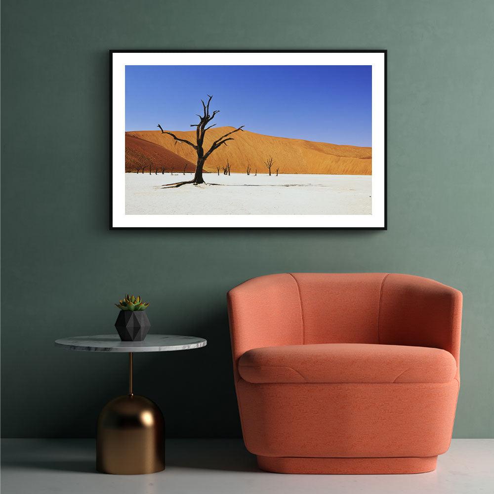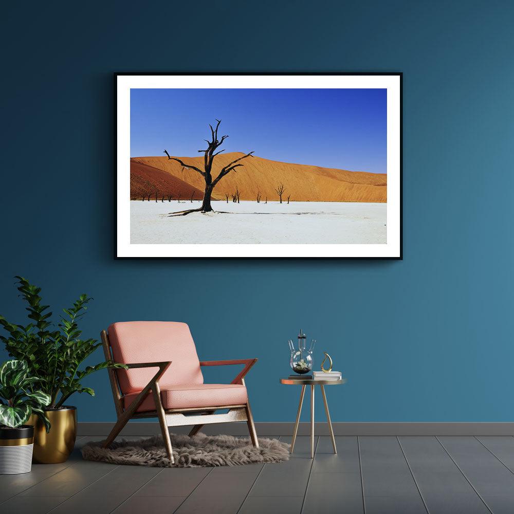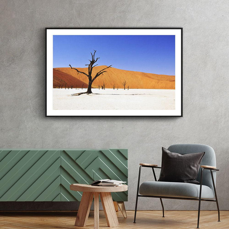 Prachtige foto van woestijn landschap met zonsondergang in Namibia Afrika. Of je nu kiest voor een poster, canvas of acrylglas, deze print van Desert namibia past perfect in elke woon- of werkruimte. Het voegt een vleugje industriële elegantie en historische rijkdom toe aan je woonkamer, kantoor of studeerkamer, en creëert een sfeer van inspiratie en verkenning.