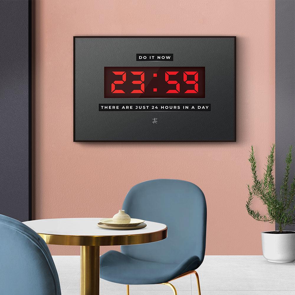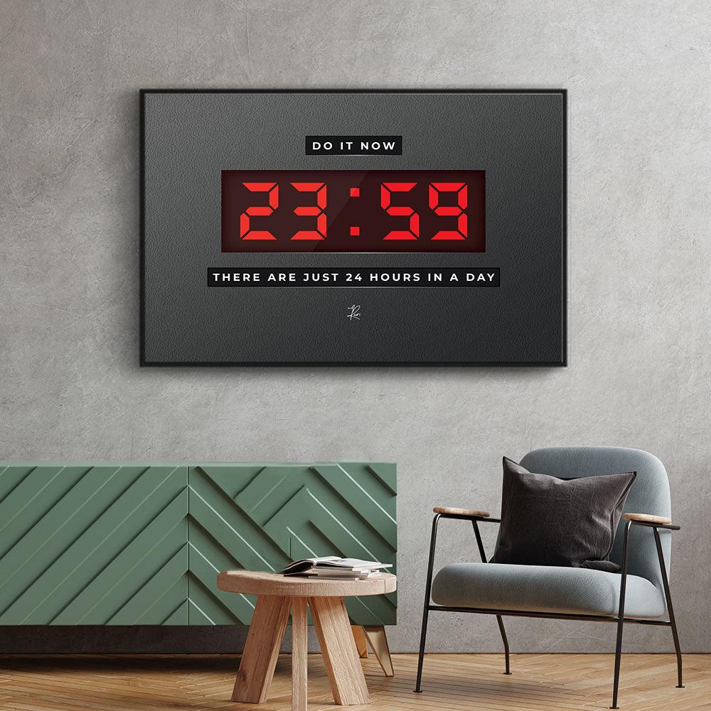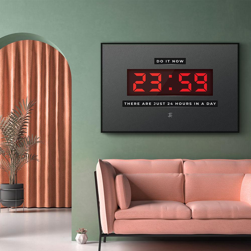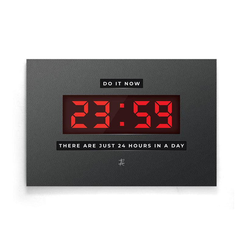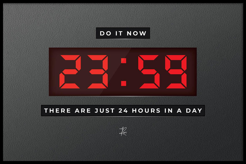 Er zit maar 24 uur in een dag. Er is dus geen tijd te verliezen. Ga nu aan de slag en maak jouw dromen waar. Haal nu deze inspiratie quote in huis en stop met stilzitten. Bekijk ook de print The best view of ontdek de motiverende muurdecoratie!