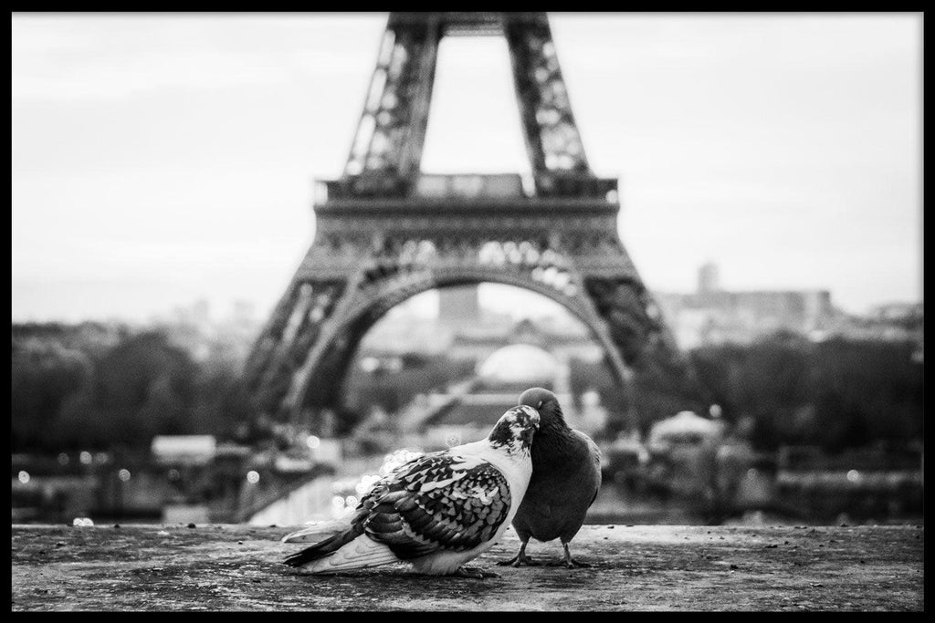 Voeg een vleugje Parijse charme en stedelijke elegantie toe aan je interieur met een print van Duiven in Parijs. Dit kunstwerk vangt de romantische sfeer van de stad, waar duiven gracieus rondfladderen te midden van iconische Parijse architectuur.