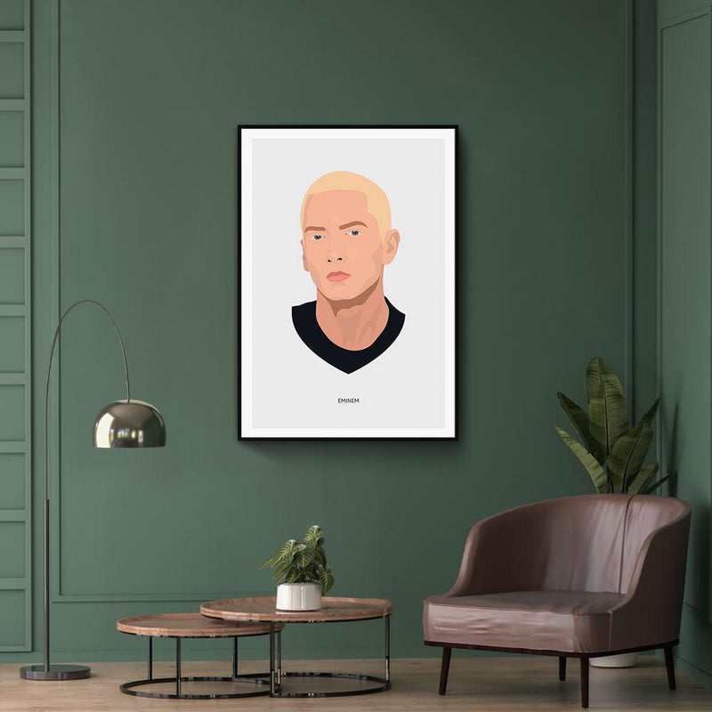 Op deze print zie je de Amerikaanse rapper Eminem afgebeeld. Een aantal van zijn bekendste nummers zijn ''Lose Yourself'', ''The Way I am'' en ''Sing For The Moment''. Naast rapper is Eminem, ook wel Slim Shady genoemd, ook producer en acteur. Combineer deze Eminem kunst ook met andere prints uit de collectie Portretten.