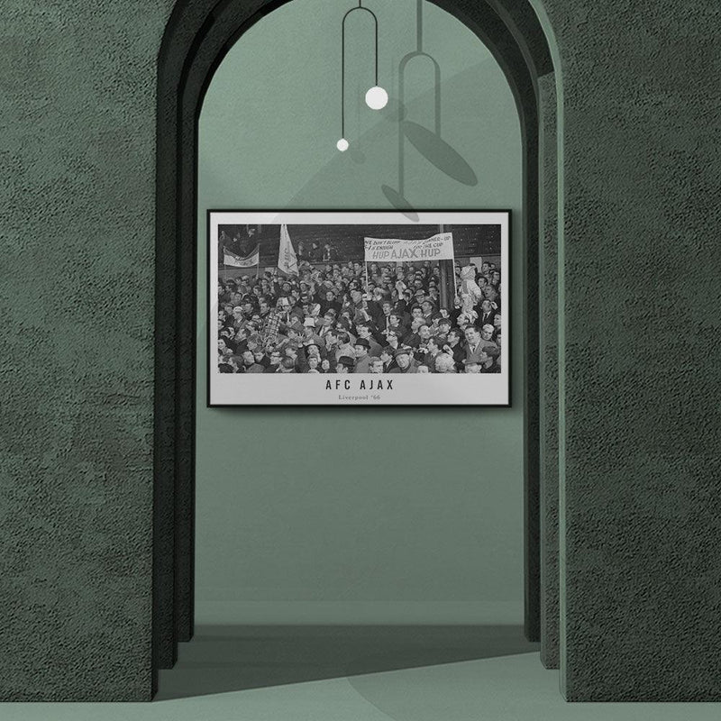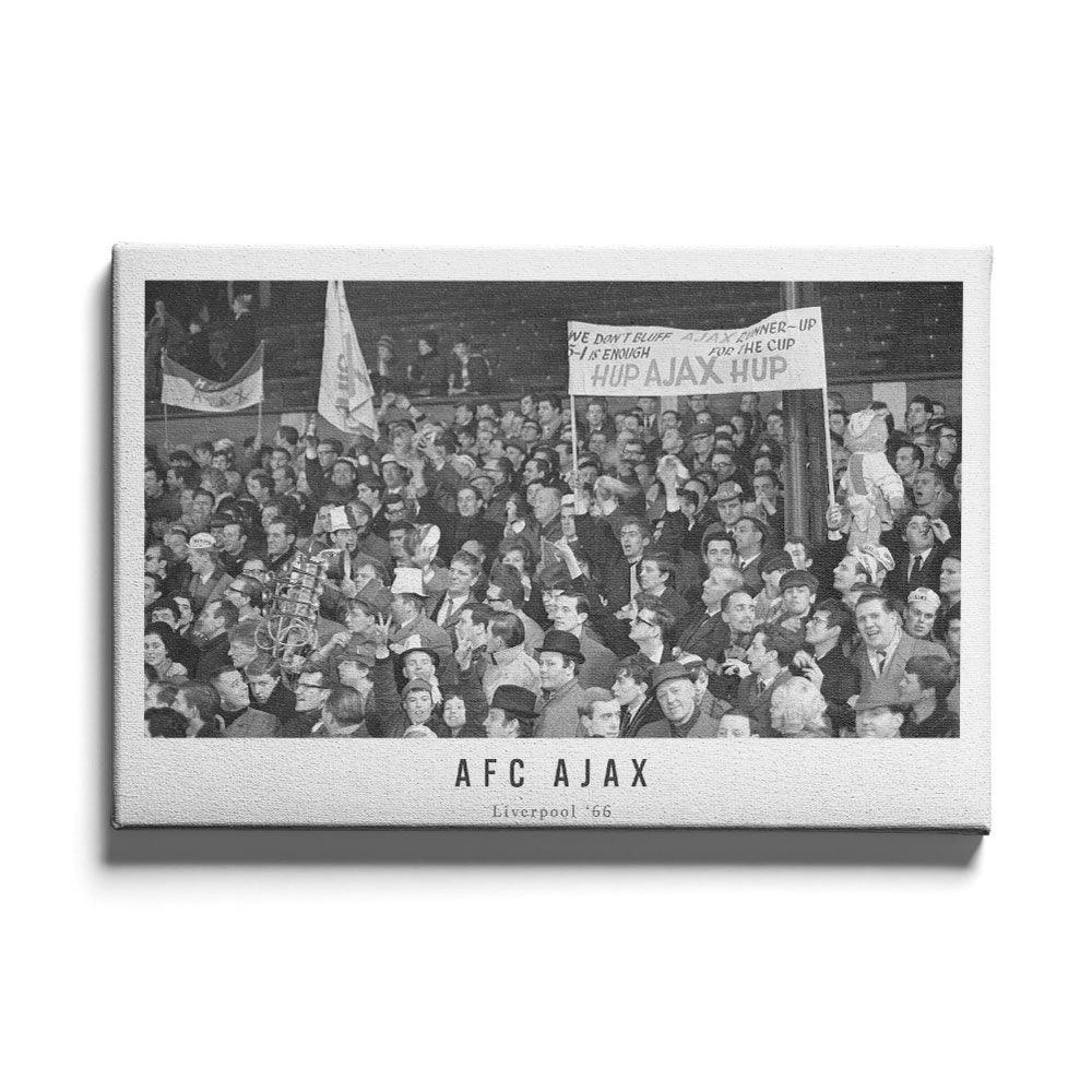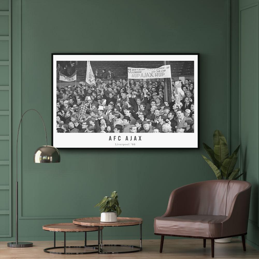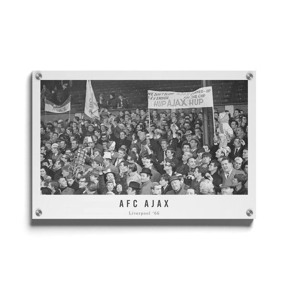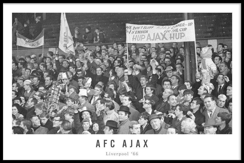 Bestel jouw favoriete wanddecoratie op de materialen poster, canvas of acrylglas. Op deze print zie je de Ajax supporters tijdens de wedstrijd Liverpool tegen Ajax 2-2. Deze wedstrijd werd gespeeld in het Anfield stadion in Liverpool. Je ziet de supporters de voetballers aanmoedigen met spandoeken.
