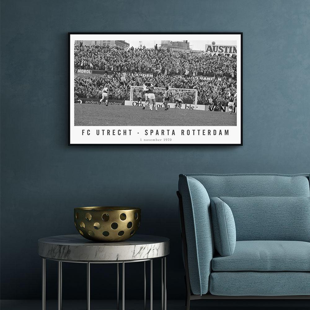 Voetballen doe je voor het publiek en dat zie je op deze foto. Het publiek gaat uit z'n dak na de 1-0 van John Steen Olsen tegen Sparta. Kies je materiaal en formaat en hang een stukje geschiedenis aan jouw muur.