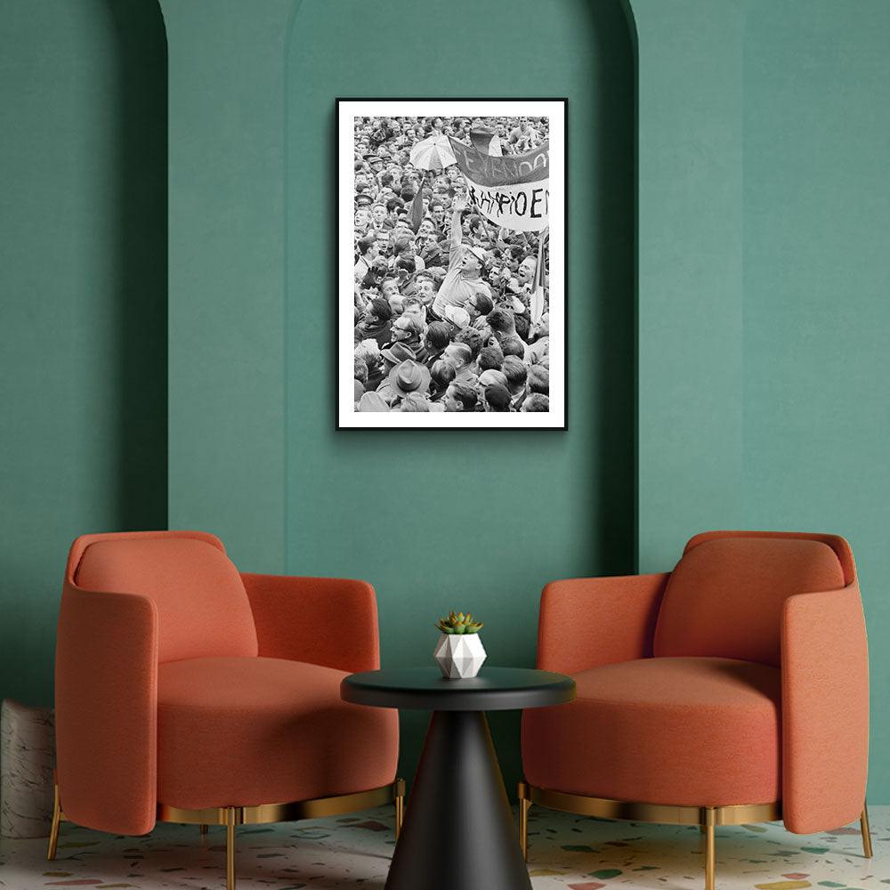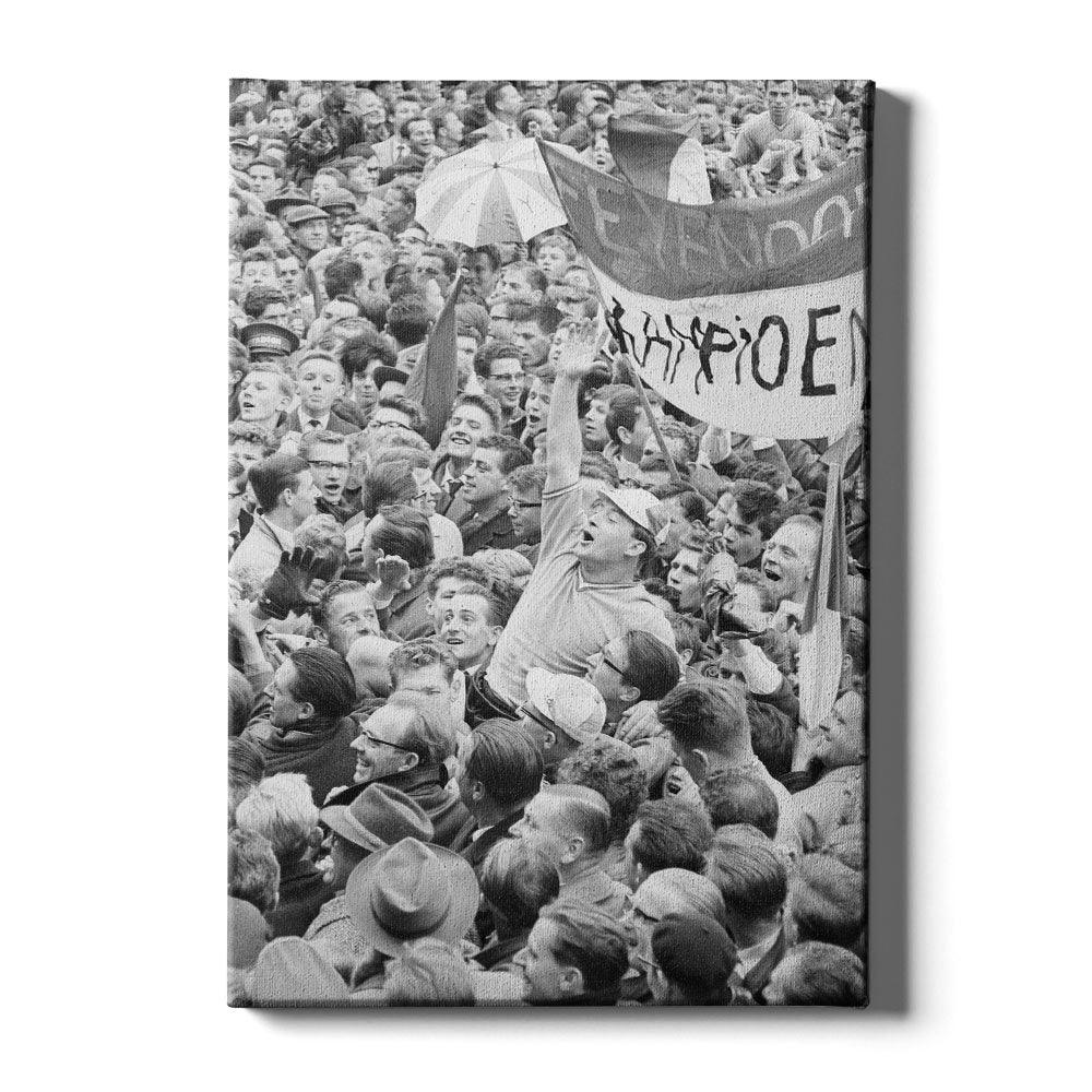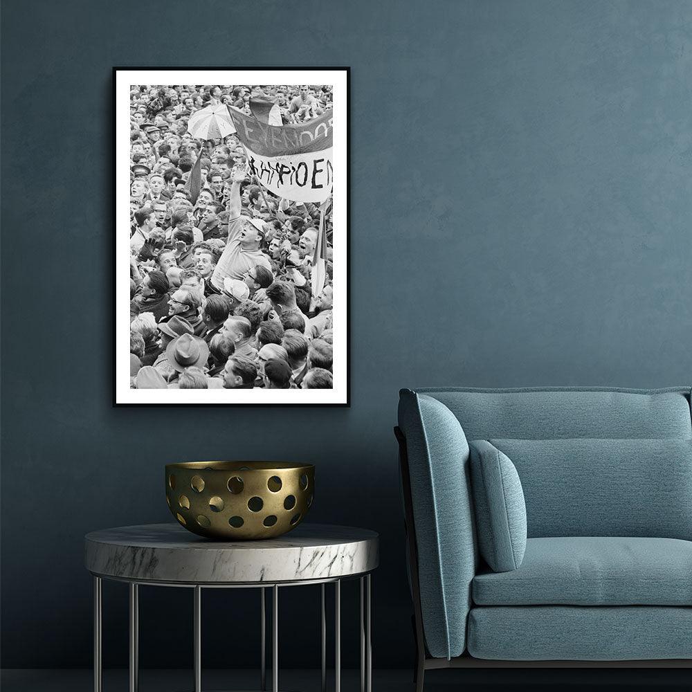 In 1962 werd Feyenoord kampioen van Nederland, en het was voor het eerst in acht jaar dat de club deze titel pakte. De supporters vierden dit uitbundig en waren blij dat Feyenoord weer bovenaan stond in de Eredivisie. Haal nu deze poster in huis op poster, canvas of plexiglas.