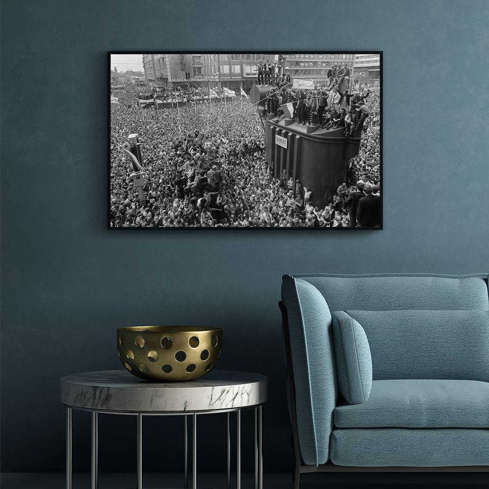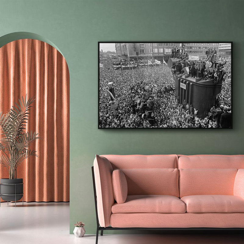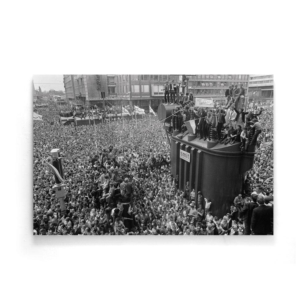 De sfeer op de Coolsingel was uitzinnig en er heerste een feestelijke stemming onder de supporters. Er werden fakkels afgestoken en er werd gezongen en gedanst op straat. Sommige supporters klommen op lantaarnpalen en verkeersborden om beter zicht te hebben op de spelers en om hun vreugde te uiten. Haal nu deze poster in huis op poster, canvas of plexiglas.