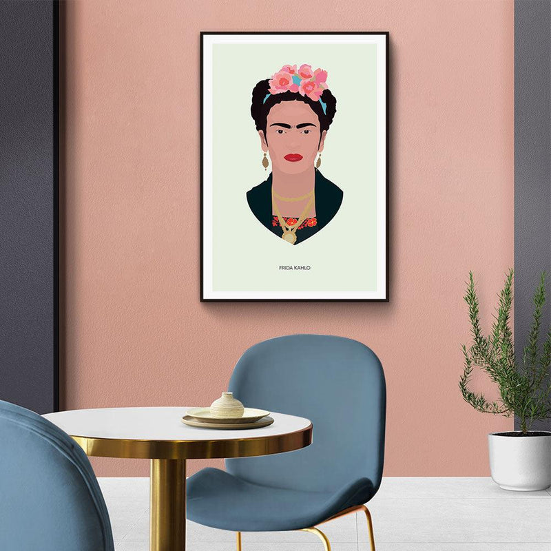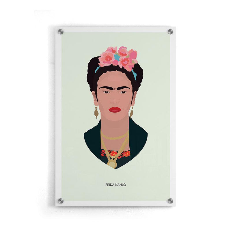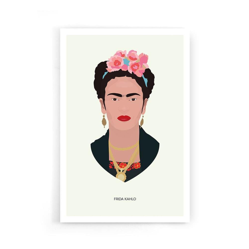 Op deze print is de Mexicaanse kunstenares Frida Kahlo afgebeeld. Frida Kahlo stond bekend om haar vele zelfportretten. Ze begon met schilderen na een zwaar ongeluk om zichzelf bezig te houden, deze bezigheid werd al snel een passie voor de rest van haar leven. Dit design is te verkrijgen op poster, canvas en plexiglas.