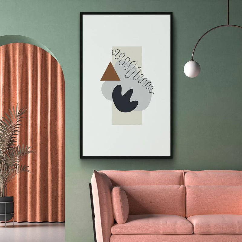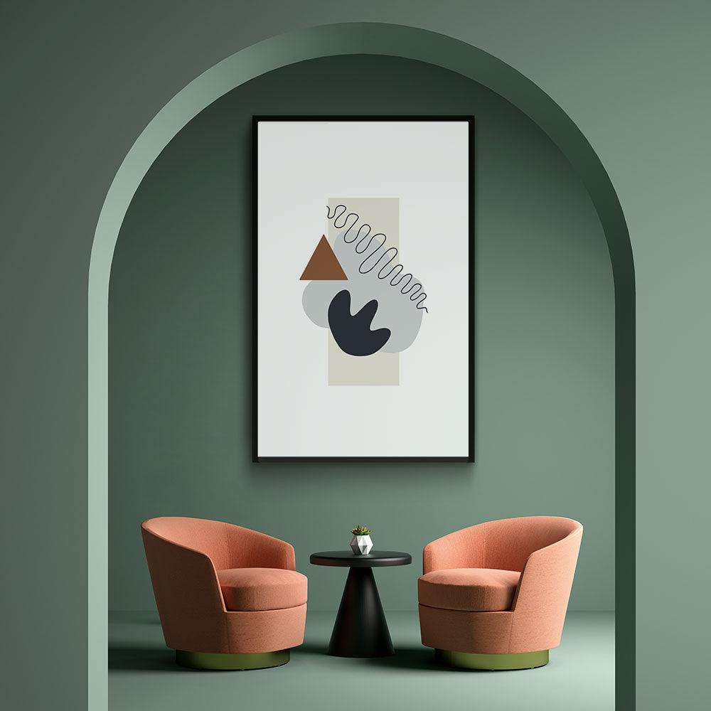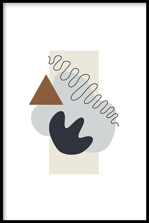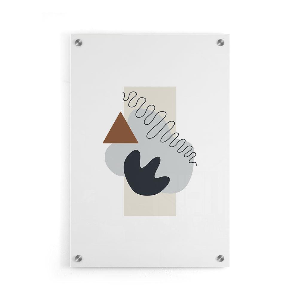 Abstracte kunst met funky vormen. Breng wat creatieve inspiratie in huis met dit gave abstracte schilderij. Op deze print zie je allerlei funky vormen op een achtergrond met witte en beige tinten. Haal deze nu in huis op plexiglas, canvas of poster.