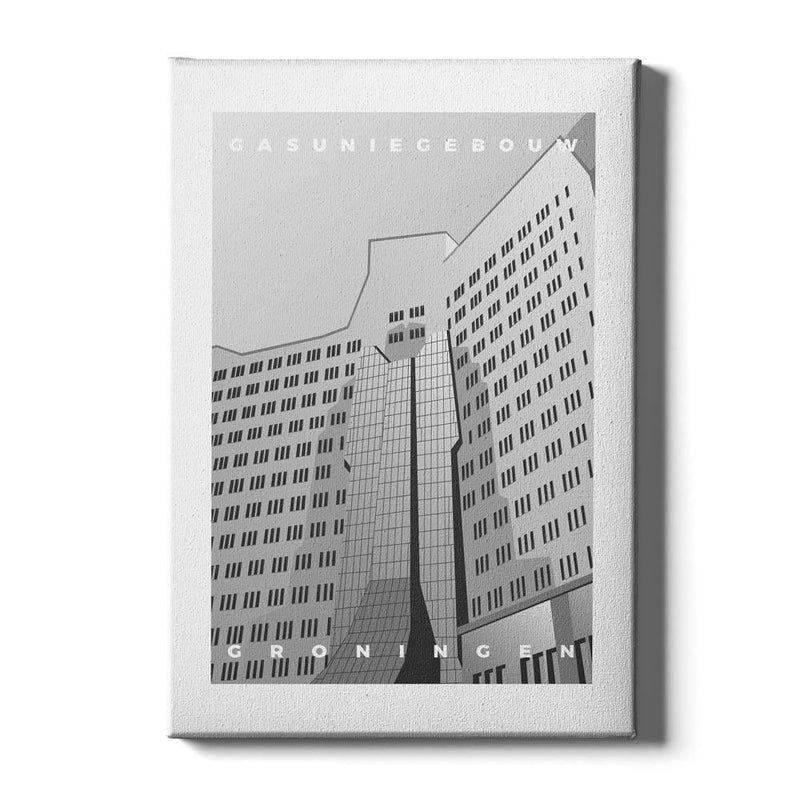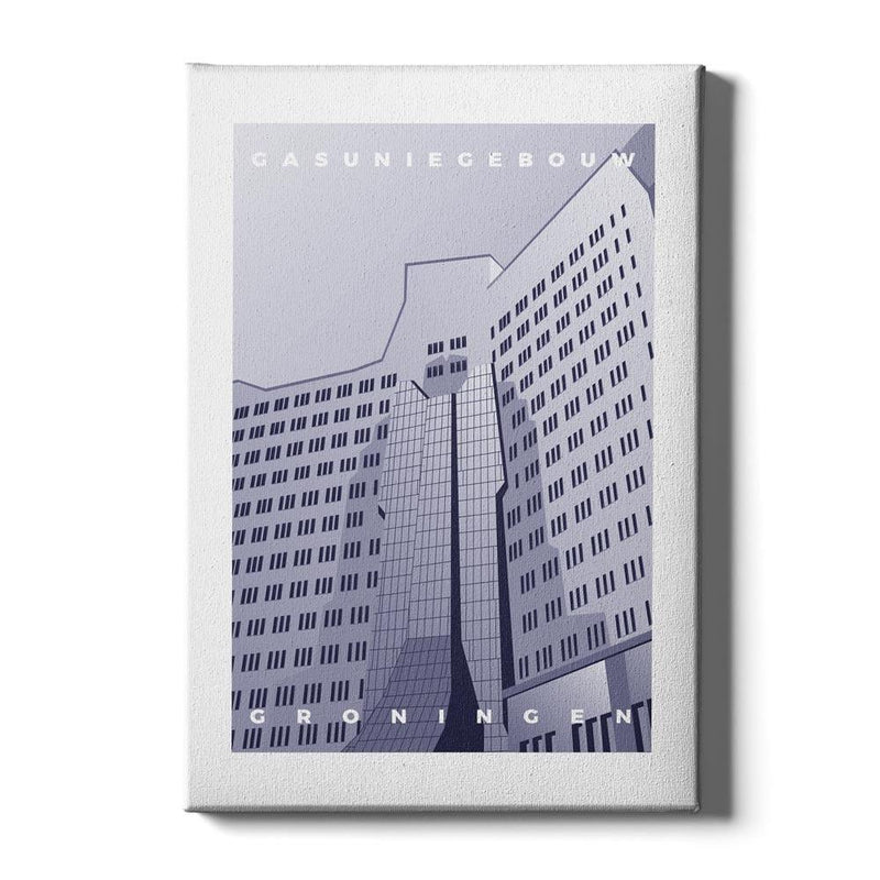 Het Gasuniegebouw is een kantoorgebouw in de stad Groningen. Het gebouw heeft de bijnaam van ‘De Apenrots’ gekregen. Het Gasuniegebouw heeft in 2007 zelfs de prijs van mooiste gebouw van Nederland gekregen. In het gebouw is het hoofdkantoor van de transportdivisie van de NV Nederlandse Gasunie gevestigd. Met het schilderij van het Gasuniegebouw aan de muur kun je genieten van een gebouw met een organisch architectuur. Laat zien dat jij Groningen waardeert met een prachtige foto van het Gasuniegebouw aan de muur.