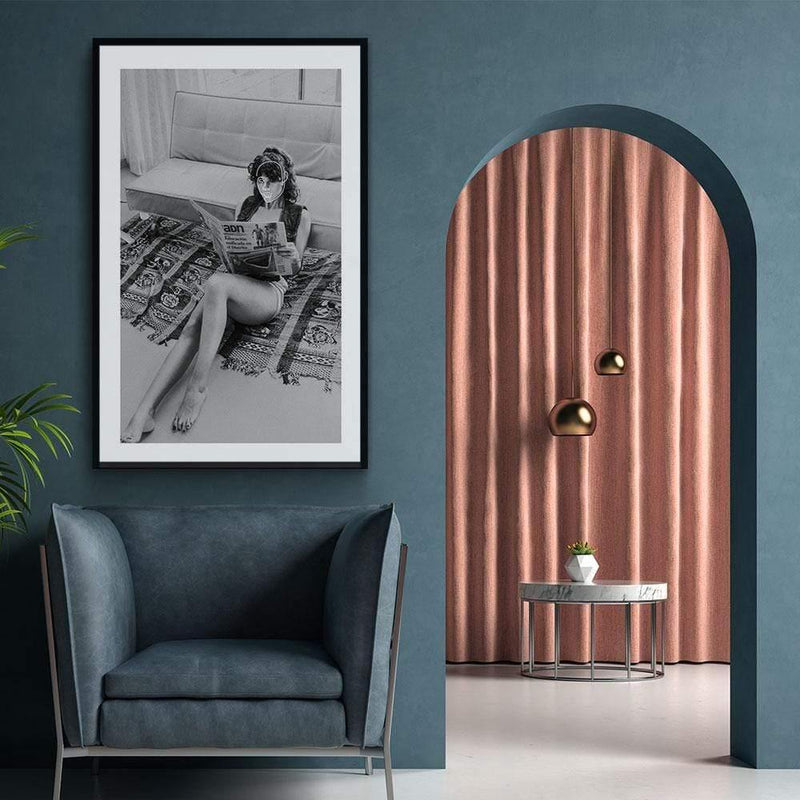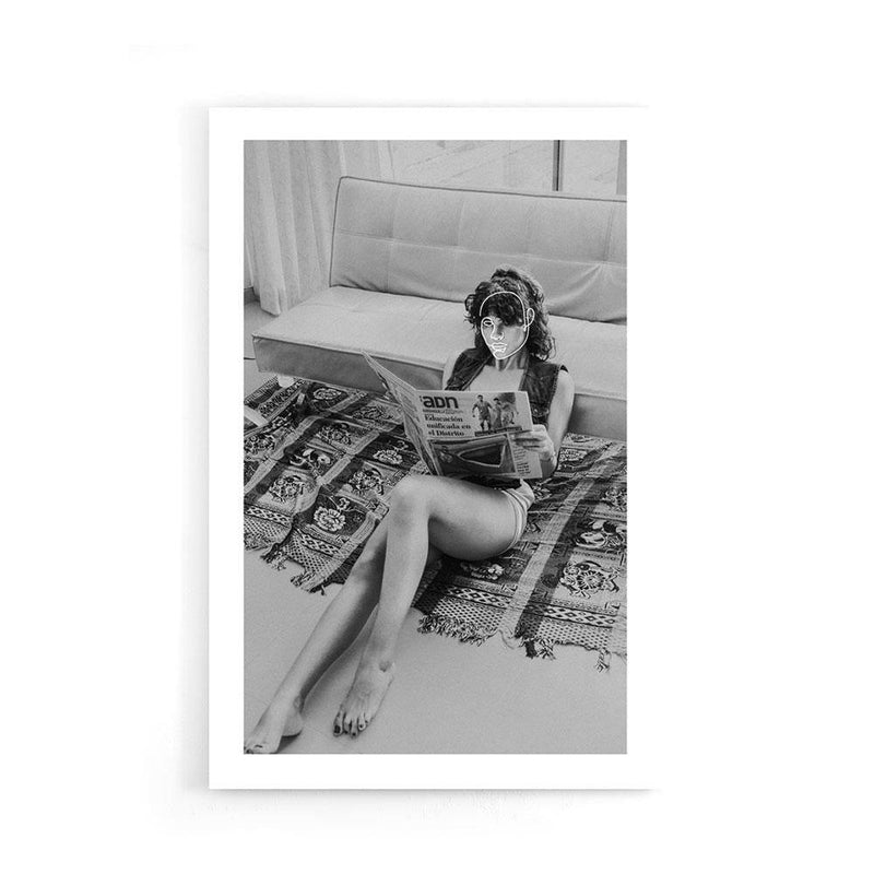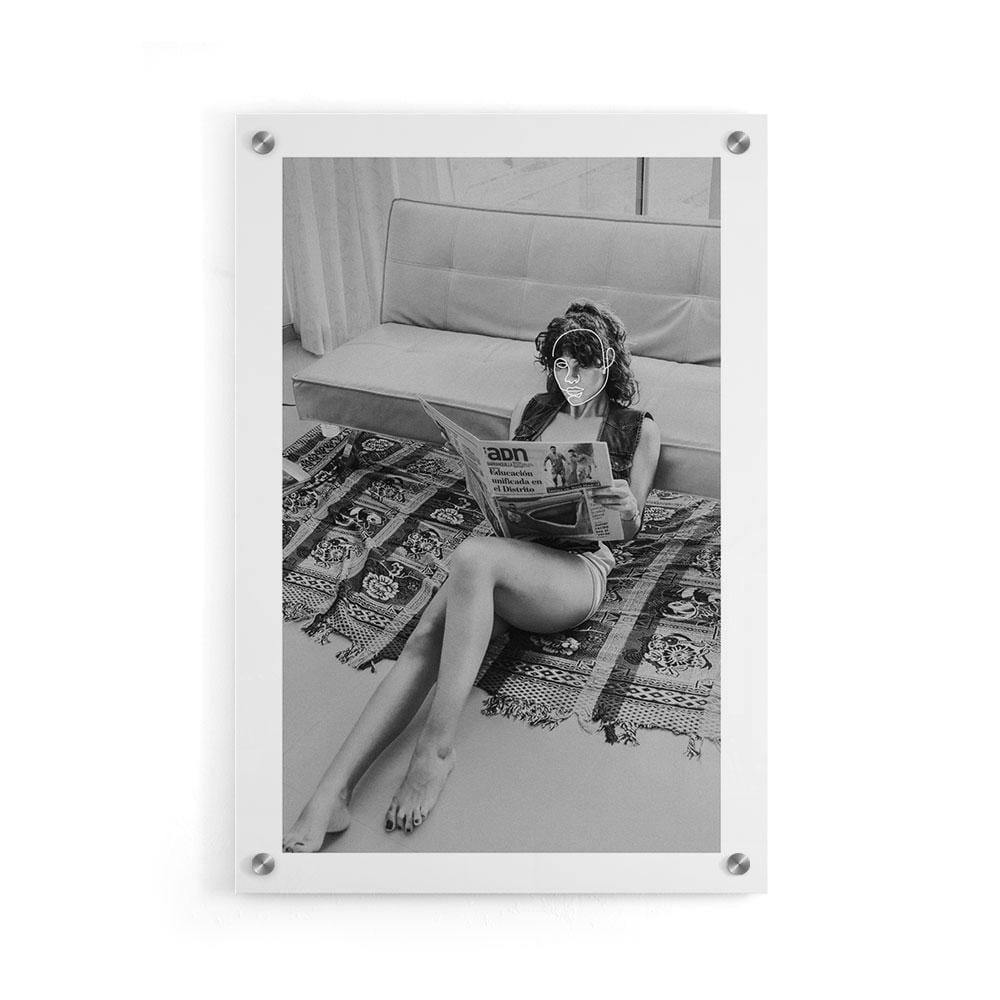 Een vette print van een vrouw die op een kleed een dagblad zit lezen. Ze leunt tegen haar retro bank aan. De fotografische kunst van deze vrouw is echt een must have voor in huis! Koop het exemplaar nu als plexiglas, canvas of poster!