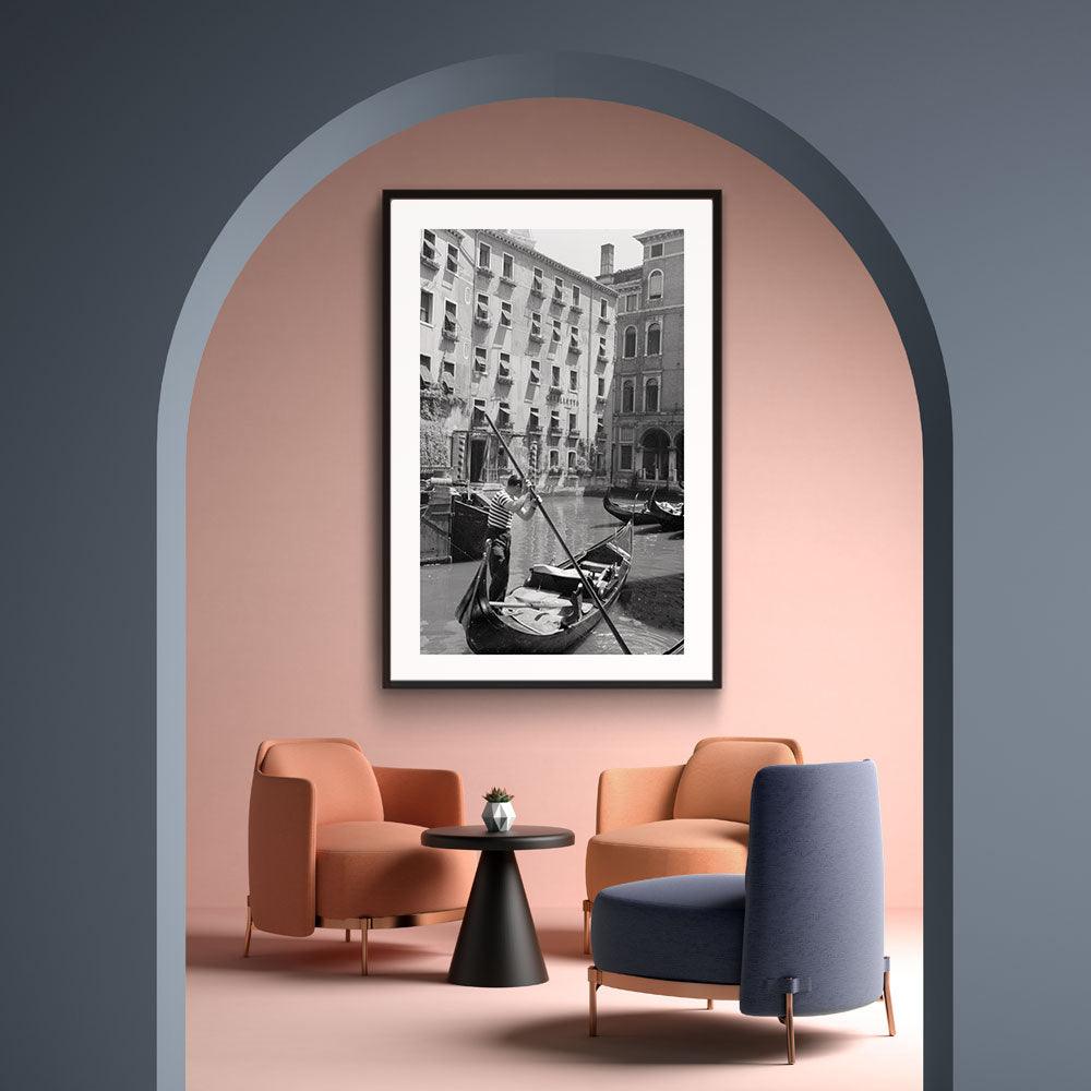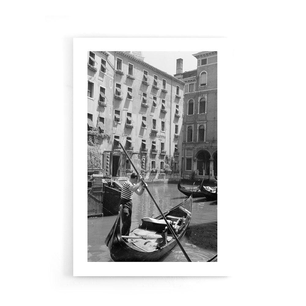 Wie heeft er nou nog nooit aan gedacht om eens een keertje naar Venetië op vakantie te gaan? Ben jij op zoek naar leuke vintage wanddecoraties voor in huis? Wij hebben onze collectie voor je klaarstaan op canvas, poster en plexiglas. Zo ook deze vintage poster van een gondelier aan het werk in de jaren 50 in de kanalen van Venetië.