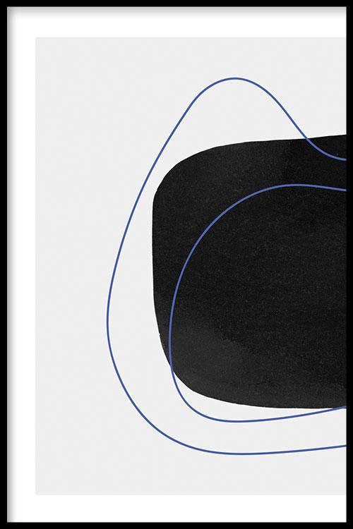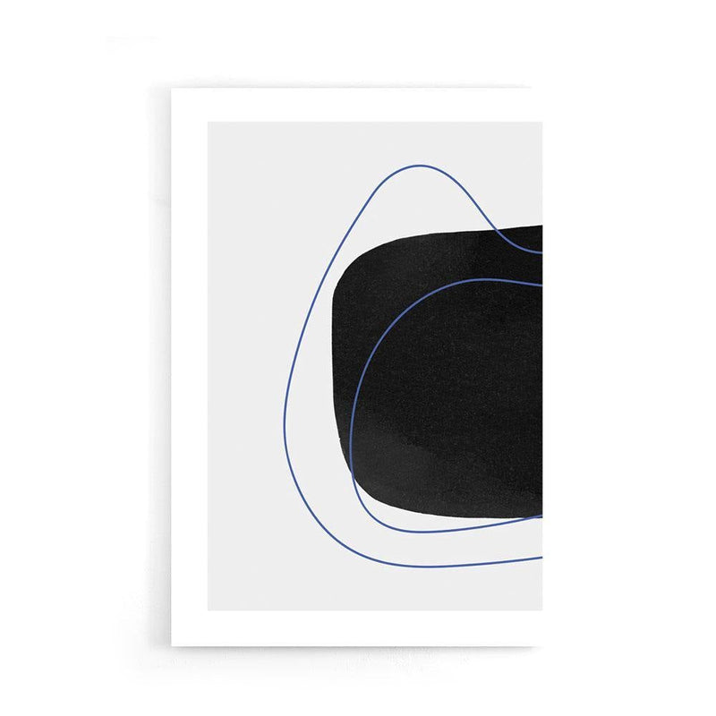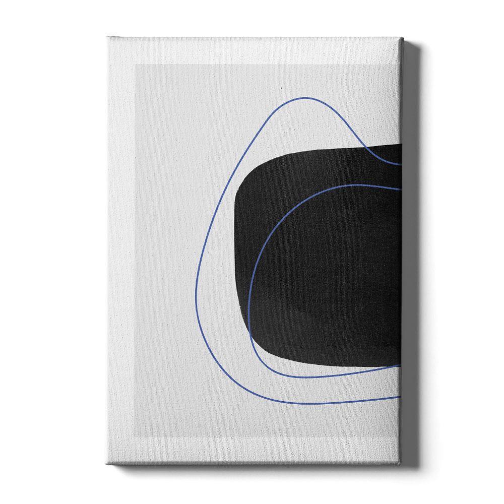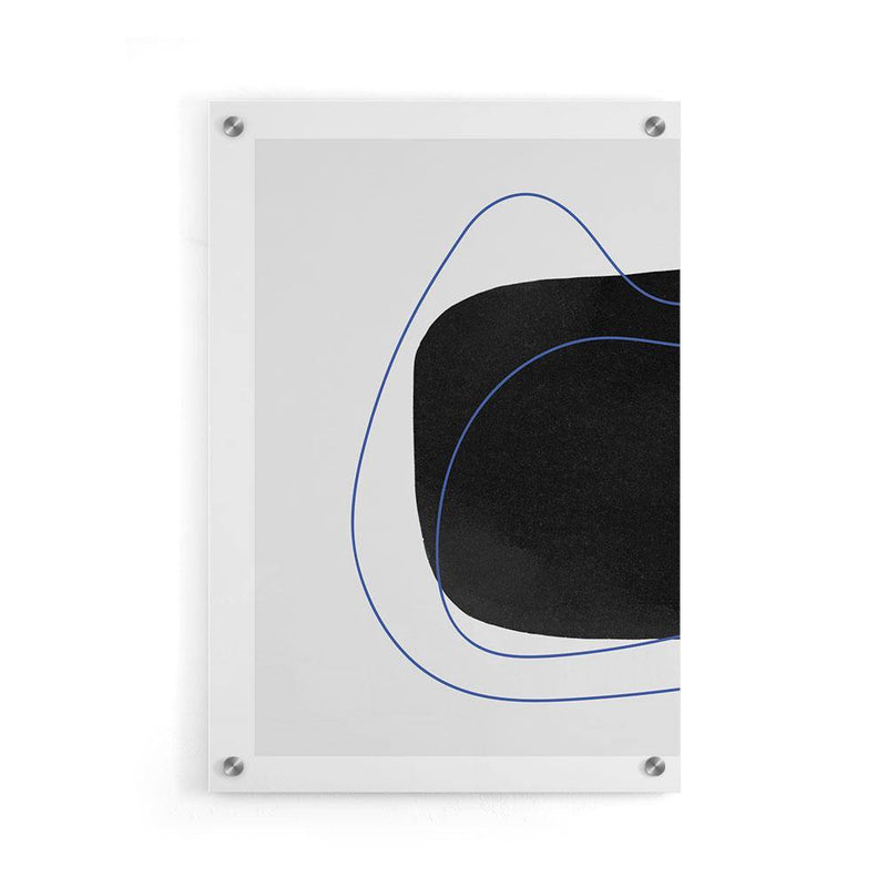 Dit schilderij is ideale kantoor decoratie. Op dit abstracte schilderij zie je een halve rechthoek met daaromheen blauwe lijnen tegen een lichte achtergrond. Te verkrijgen op poster, canvas en plexiglas.