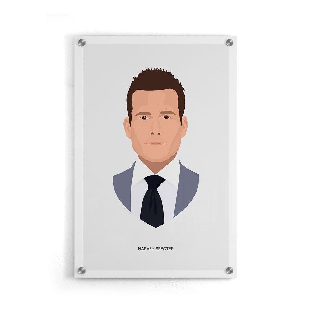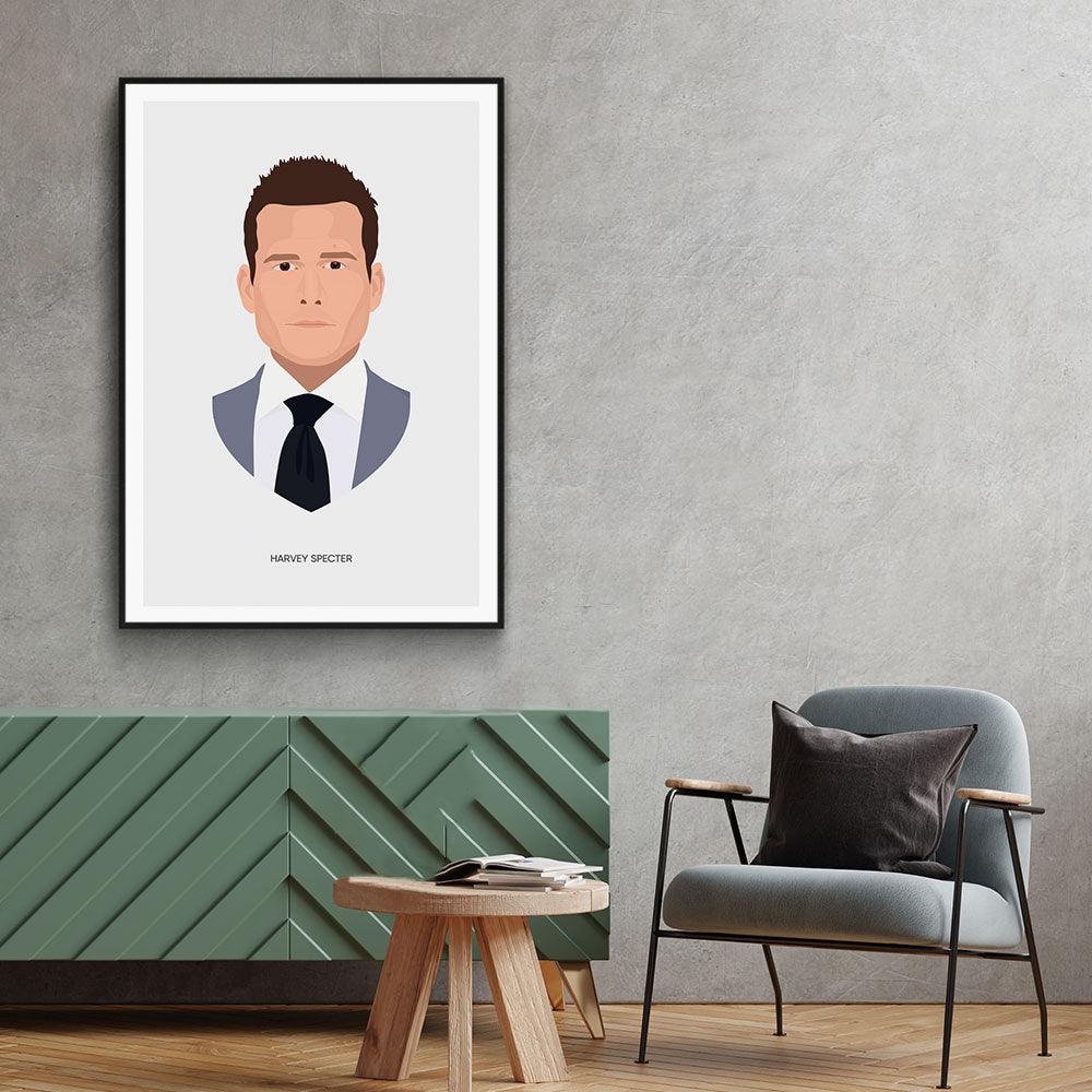 Op deze print staat het karakter Harvey Specter uit de serie Suits afgebeeld. Suits is een Amerikaanse juridische drama serie, waarin onder andere Harvey Specter en Mike Ross een hoofdrol spelen. Harvey is een senior partner bij een top advocatenkantoor in Manhattan. Harvey heeft de advocaat Mike Ross ingehuurd, echter verbergen ze het feit dat Mike geen rechtendiploma heeft.