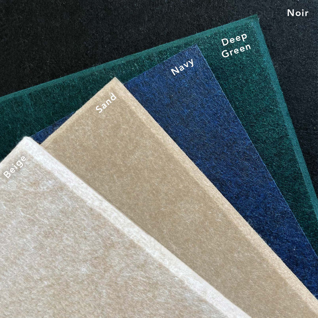 Onze wandtegels zijn gemaakt van 9 mm dik geluiddempend PET-vilt, gemaakt van gerecyclede plastic flessen. Ze dragen bij aan een betere akoestiek en kunnen helpen bij het creëren van een aangename geluidsomgeving. Elke tegel is afgewerkt met een subtiele facetrand voor een verfijnde uitstraling.