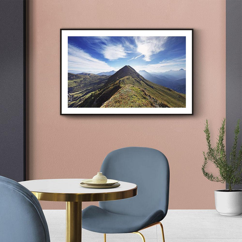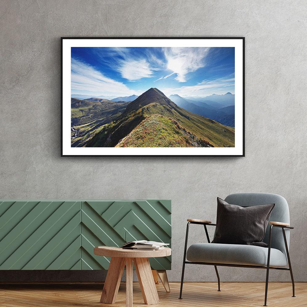 Breng de majestueuze pracht van de bergen in huis met deze adembenemende afbeelding van Monte Lodin, beschikbaar als poster, canvas of acrylglas print. De afbeelding toont de imposante en indrukwekkende piek van Monte Lodin, die trots oprijst tegen de heldere hemel. De ruige rotsformaties en weelderige groene vegetatie creëren een schilderachtig landschap dat de essentie van de bergachtige schoonheid vastlegt.