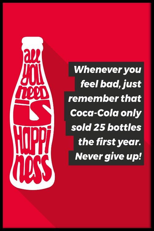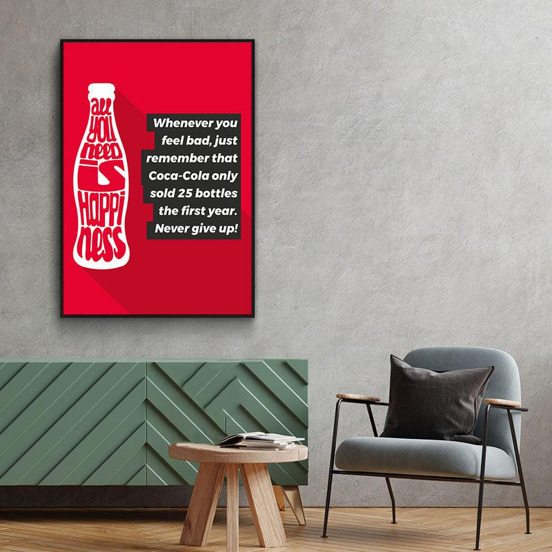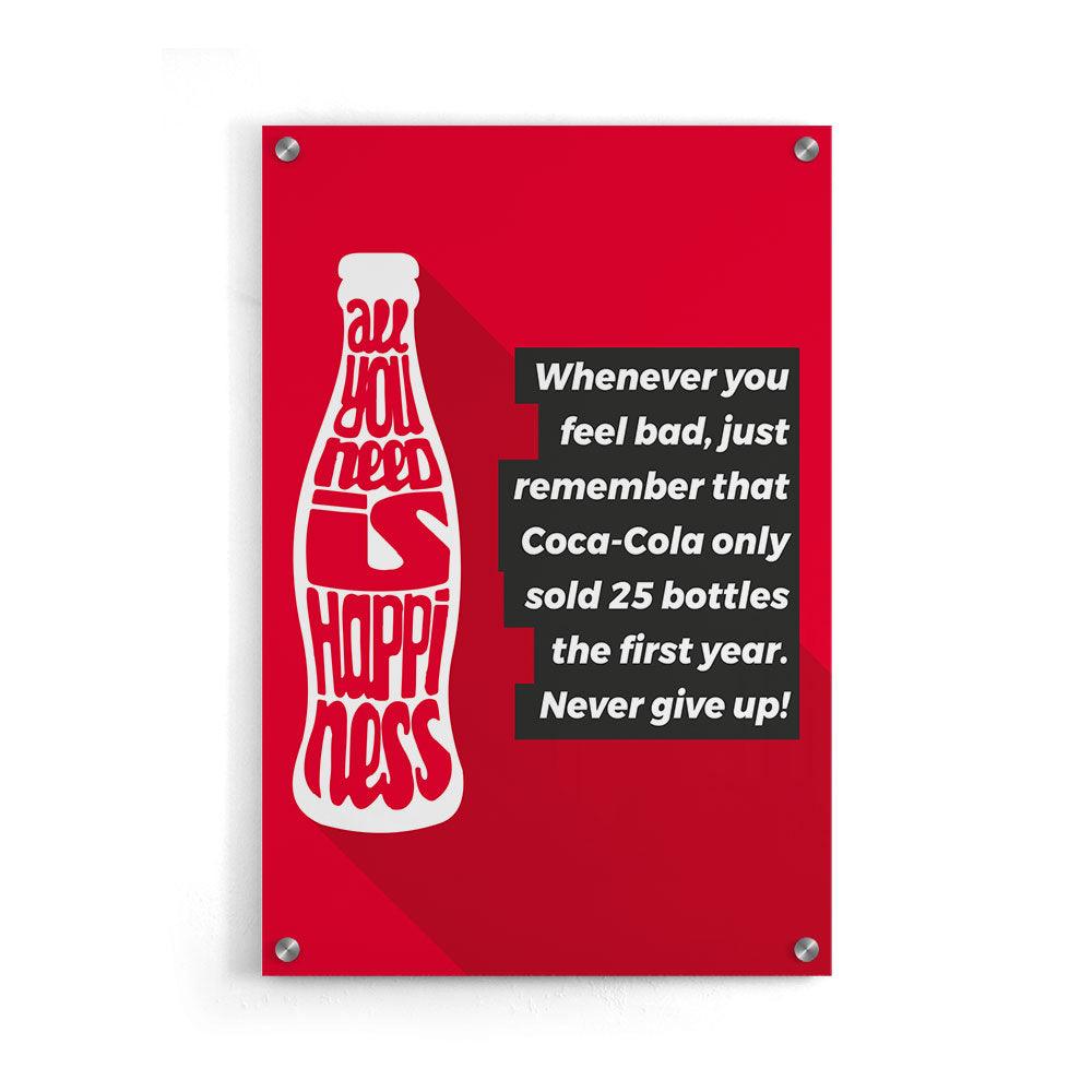 Zelfs de grootste bedrijven van nu zijn ooit klein begonnen. Dit zijn ook de stappen die jij moet doornemen onderweg naar succes. Hang deze inspiratie quote nu aan de muur en streef naar dat succes. Zelfs Coca-Cola is klein begonnen, dus waarom jij niet? Gebruik deze print als reminder om nooit op te geven! Bekijk ook de print Dream of ontdek alle motivatie wanddecoratie!