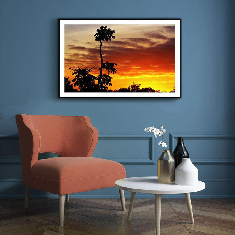 Met deze zonsopkomst en zonsondergang poster kun jij genieten van de mooiste luchten. Met deze wanddecoratie geef jij jouw huis meteen een gezellige look.