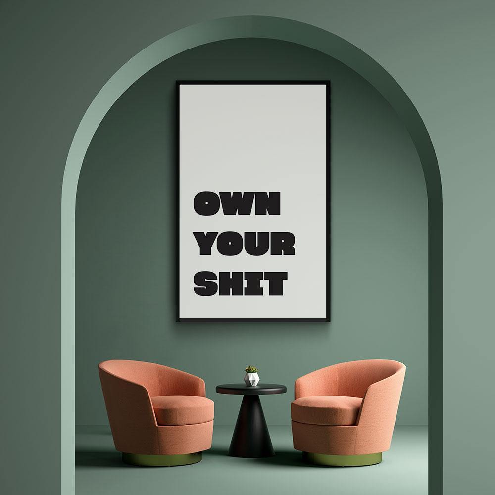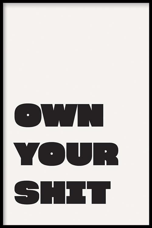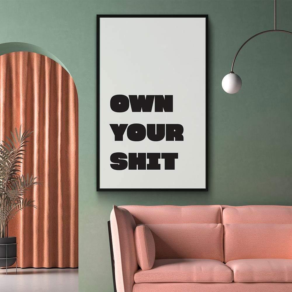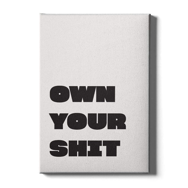 Own your shit! Pak verantwoordelijkheid voor alles wat je zegt en doet. Dit is een belangrijk onderdeel van volwassen worden. Bestel deze motiverende tekst nu op canvas, poster of plexiglas!