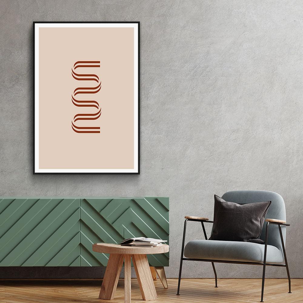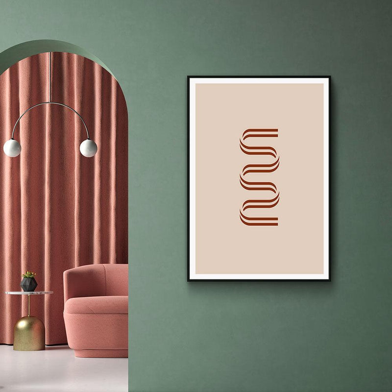 Een lichtroze met rode abstracte print. De rode goven steken mooi af tegen de roze achtergrond en het witte kader maakt het helemaal af. Bij abstracte kunst heeft iedereen een eigen interpretatie, waardoor abstracte kunst een leuk gespreksonderwerp kan worden.