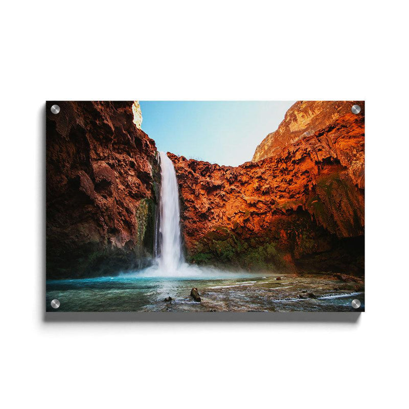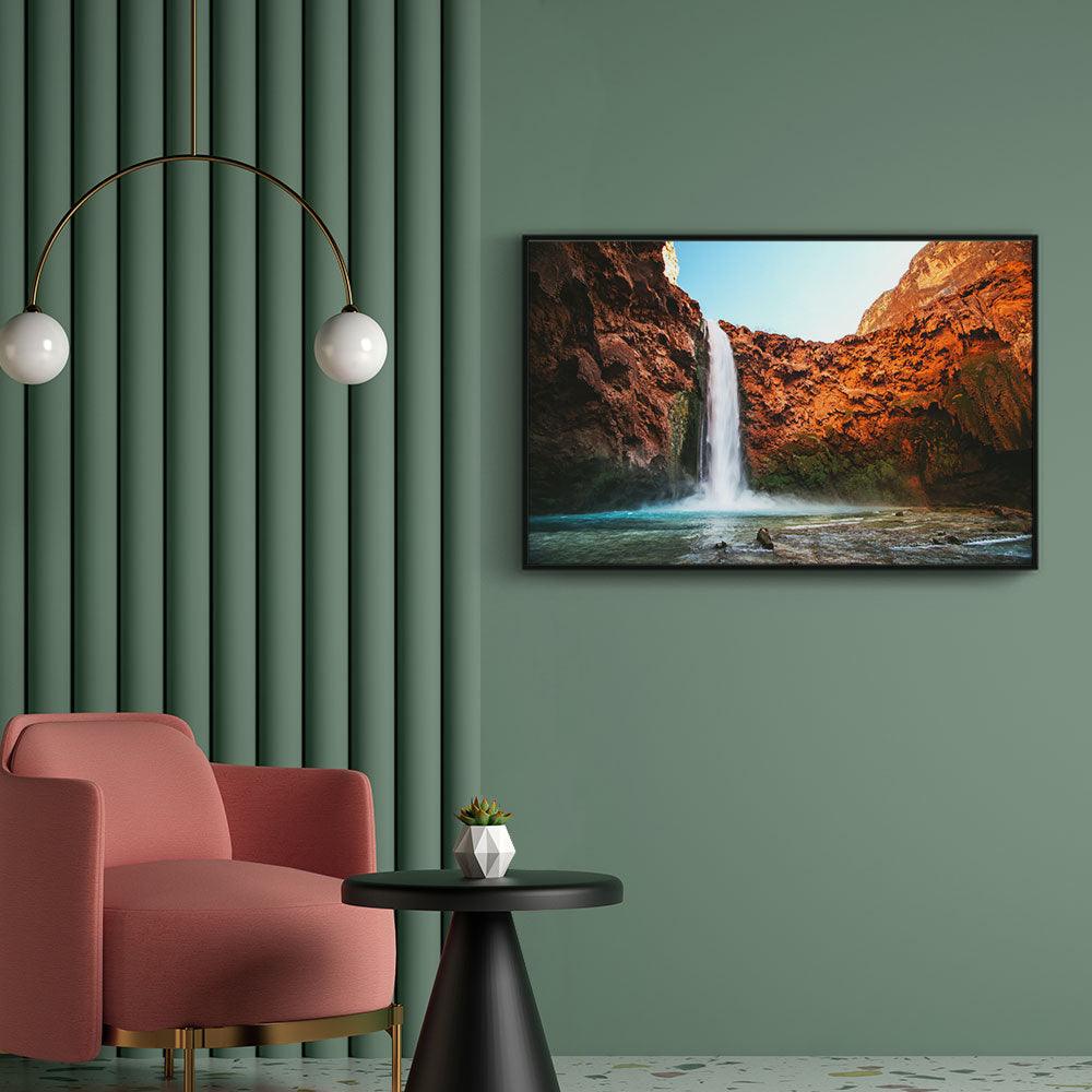Breng de natuur in huis met de print "Rocky Waterfall. Deze print van een waterfall tussen rotsen past in ieder interieur. Verkrijgbaar als poster, canvas en glasschilderij.