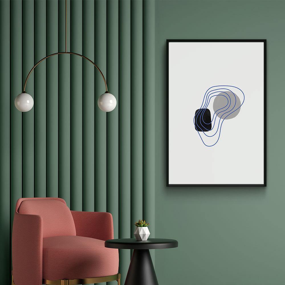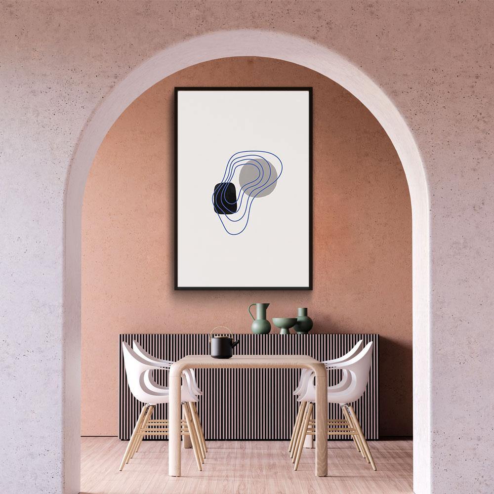 Op dit abstracte schilderij zie je vormen en lijnen dat lijkt op water. De vormen en lijnen worden weergegeven tegen een lichte achtergrond. Combineer samen met andere posters en maak jouw ideale fotowand!