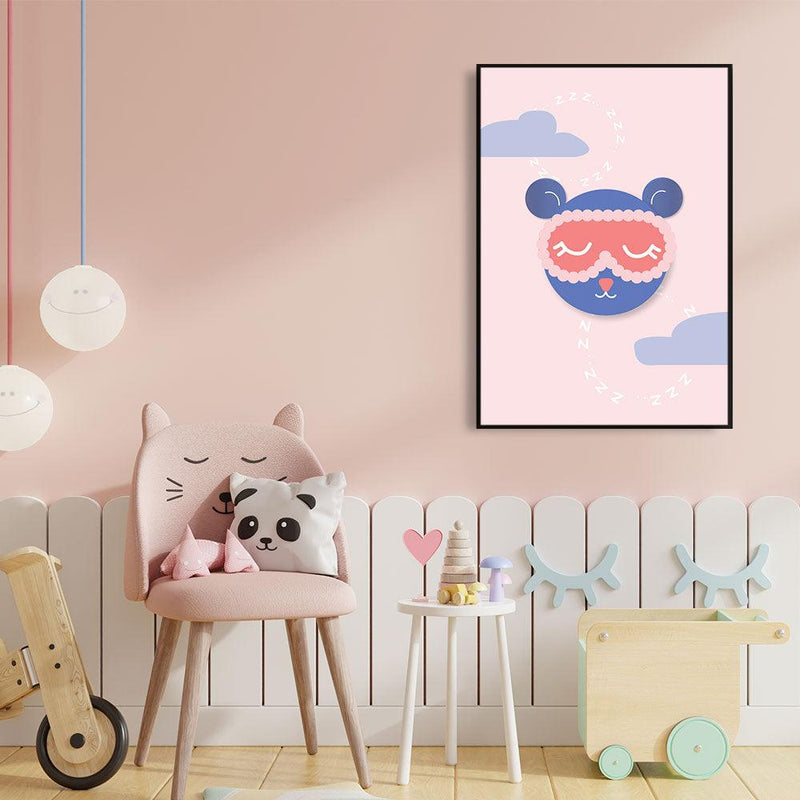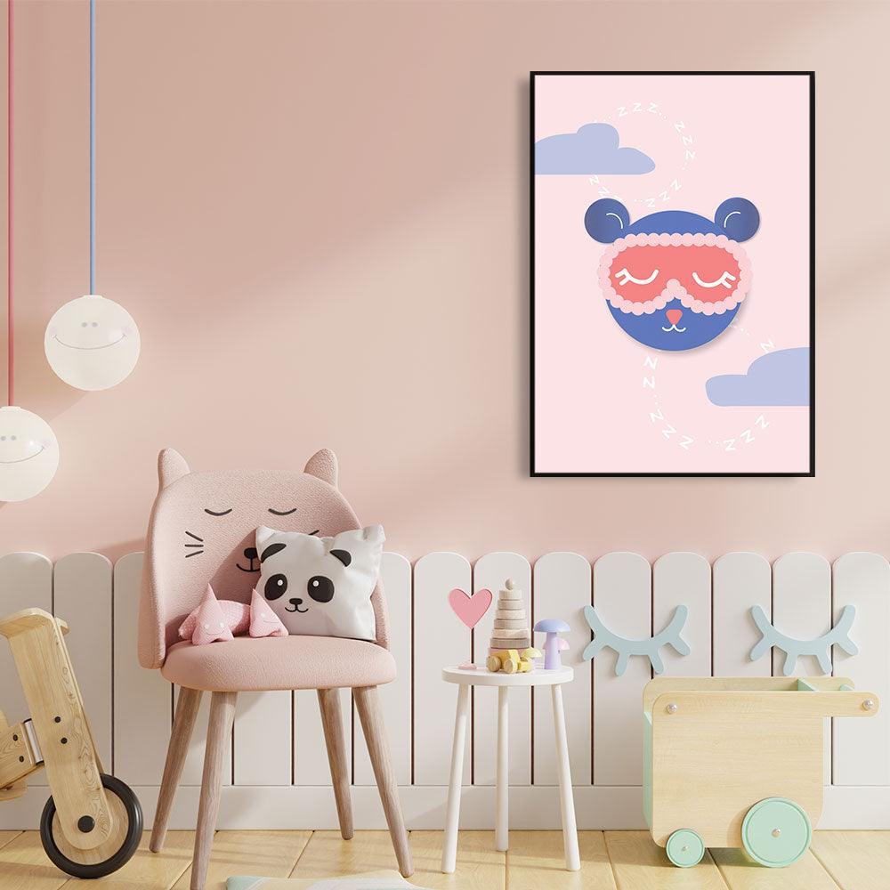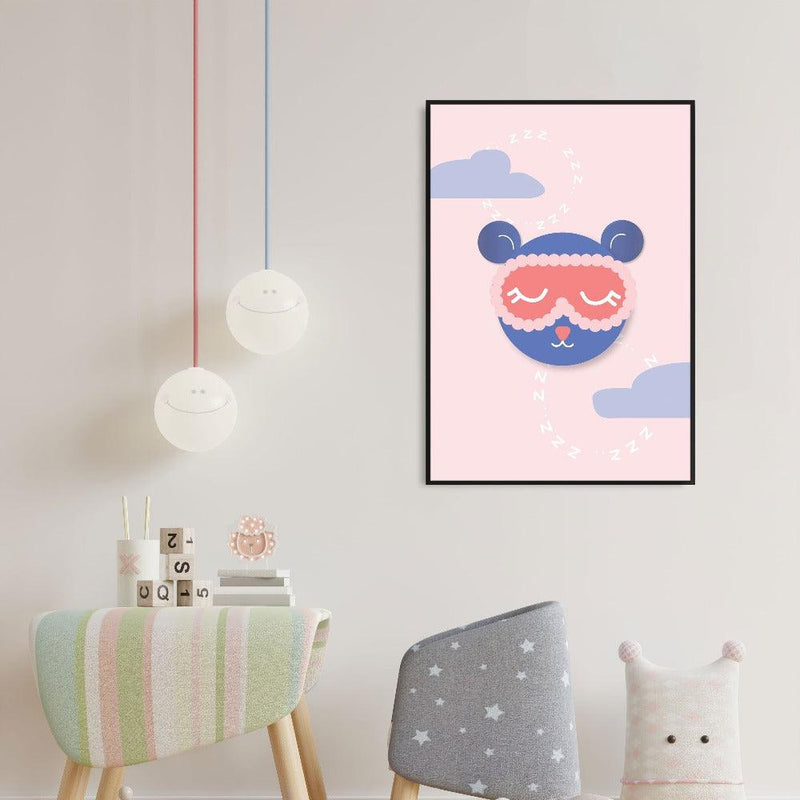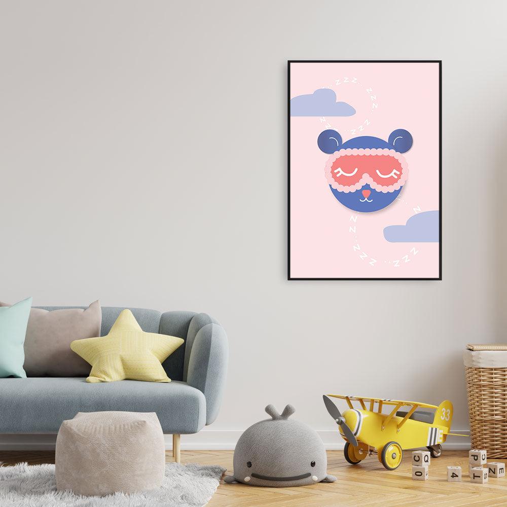 Kies samen met de kinderen leuke kunst uit om de kinderkamers te versieren. Op deze dierenposter zie je een slapende teddybeer. Het combineren van schattige illustraties op een fotowand is perfect om de kinderkamer tot een leuke en creatieve ruimte om te bouwen.