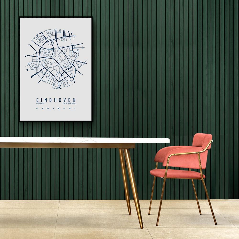 Op deze stadskaart zie je de schitterende binnenstad van één van de mooiste steden van Nederland: Eindhoven! Met deze wanddecoratie van Eindhoven zal je altijd herinnerd worden aan jouw stad, erg leuk om te geven of te krijgen. Bij Walljar bestel je jouw favoriete stadskaarten in verschillende materialen en maten. Zo kun je deze stadskaart van het centrum van Eindhoven bestellen op poster, canvas en plexiglas. Voor de stadskaart poster geldt dat je de posters zowel met als zonder lijst kunt bestellen.