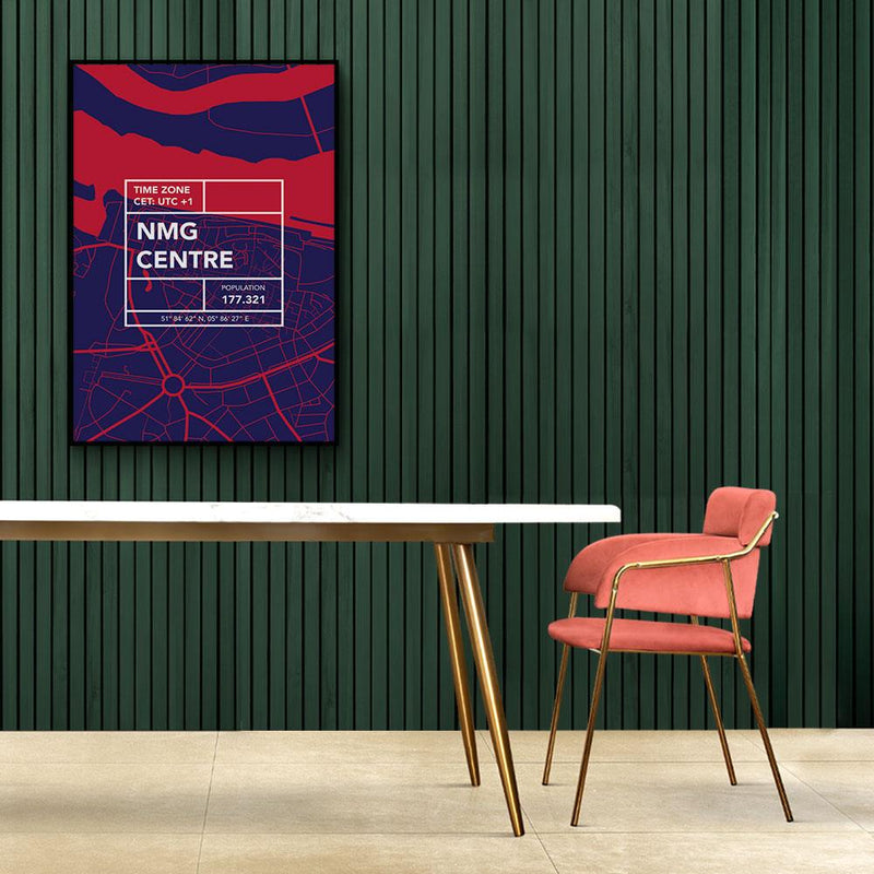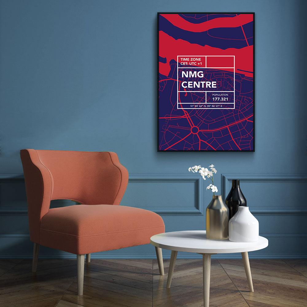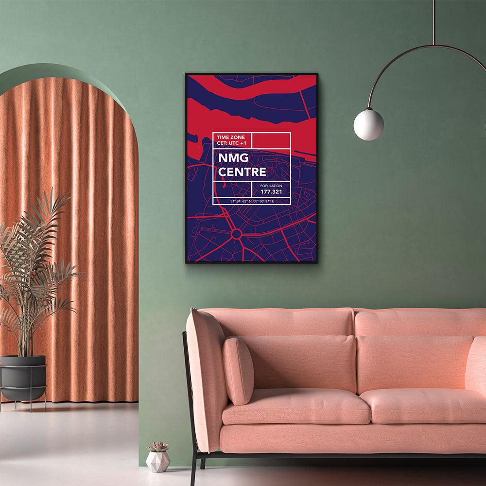 Met deze muurdecoratie van een stadskaart van Nijmegen kun je jouw kantoor of huis op een hippe manier decoreren. De stadsplattegrond van Nijmegen zal een mooie aanvulling zijn in jouw interieur. Heb jij een favoriete herinnering van deze stad? Misschien zijn je kinderen er geboren, heb je er een mooie reis gemaakt of is het de stad waar je zelf opgegroeid bent. Met deze stadskaart kunst zal jij je favoriete herinnering kunnen herbeleven! Je kunt deze stadskaart bestellen in verschillende maten en materialen. Altijd wel eentje die bij jouw wensen past! Kortom, waar wacht je nog op? Snel bestellen!