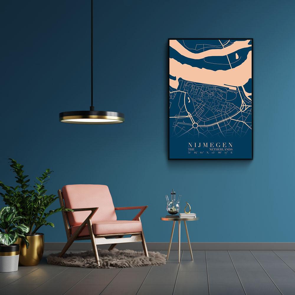 Met deze wandversiering van Nijmegen zal jij die ene mooie herinnering uit jouw stad herbeleven. Op deze print zie je de stadsplattegrond van het centrum van Nijmegen. Ben jij nou trots op je stad? Dan kan deze poster of print wel eens perfect voor jou zijn! De hippe designs van de stadskaarten staan in contrast met de strakke, moderne en industriële woonstijl. Met deze kunst aan de muur in combinatie met de andere posters en prints uit de collectie Nijmegen kun jij een prachtige fotowand creëren.