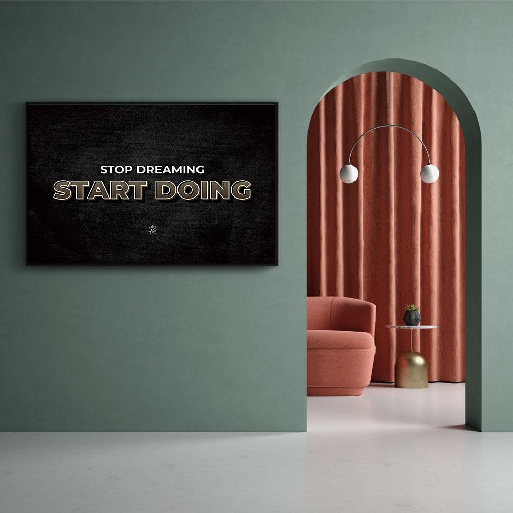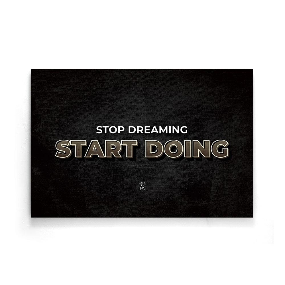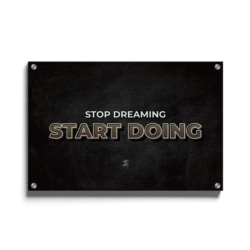 Van dromen kun je niet leven, ga dus aan de slag! Deze inspiratie quote motiveert jou aan de slag te gaan en je dromen waar te maken. Hang deze poster aan je muur als motivatie om je dromen achterna te gaan. Bekijk ook de print Work hard and hustle of ontdek de motiverende wanddecoratie!