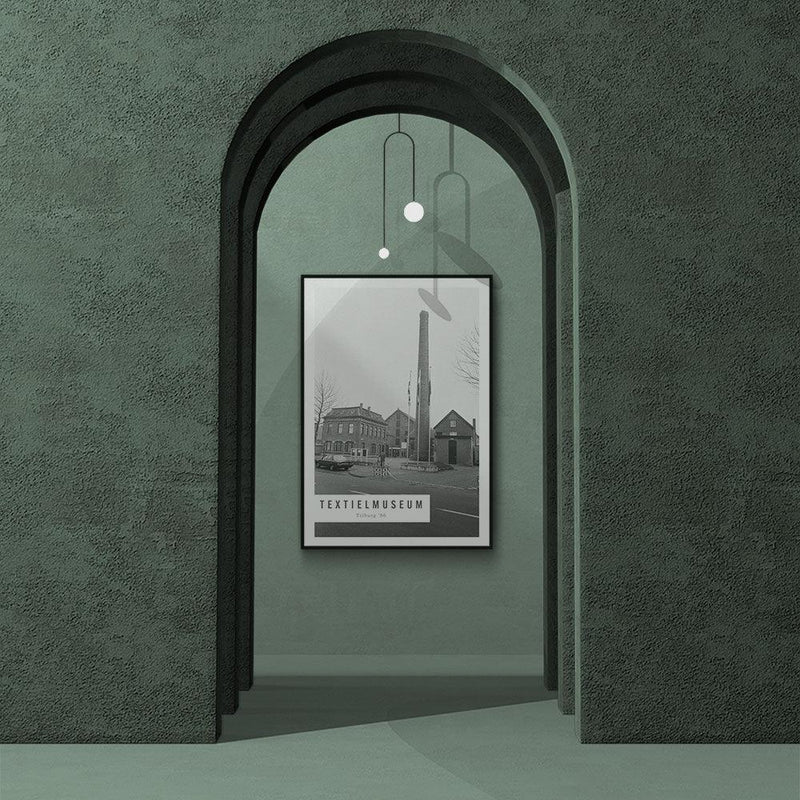 Op deze print zie je het Textielmuseum in Tilburg. Het Textielmuseum werd in de jaren 60 gebouwd door de Tilburgse wollenstoffenfabrikant en ‘thuisweverszoon’ Christiaan Mommers. Tegenwoordig wordt het museum gebruikt voor inspirerende tentoonstellingen, educatieve programma’s en het TextielLab.